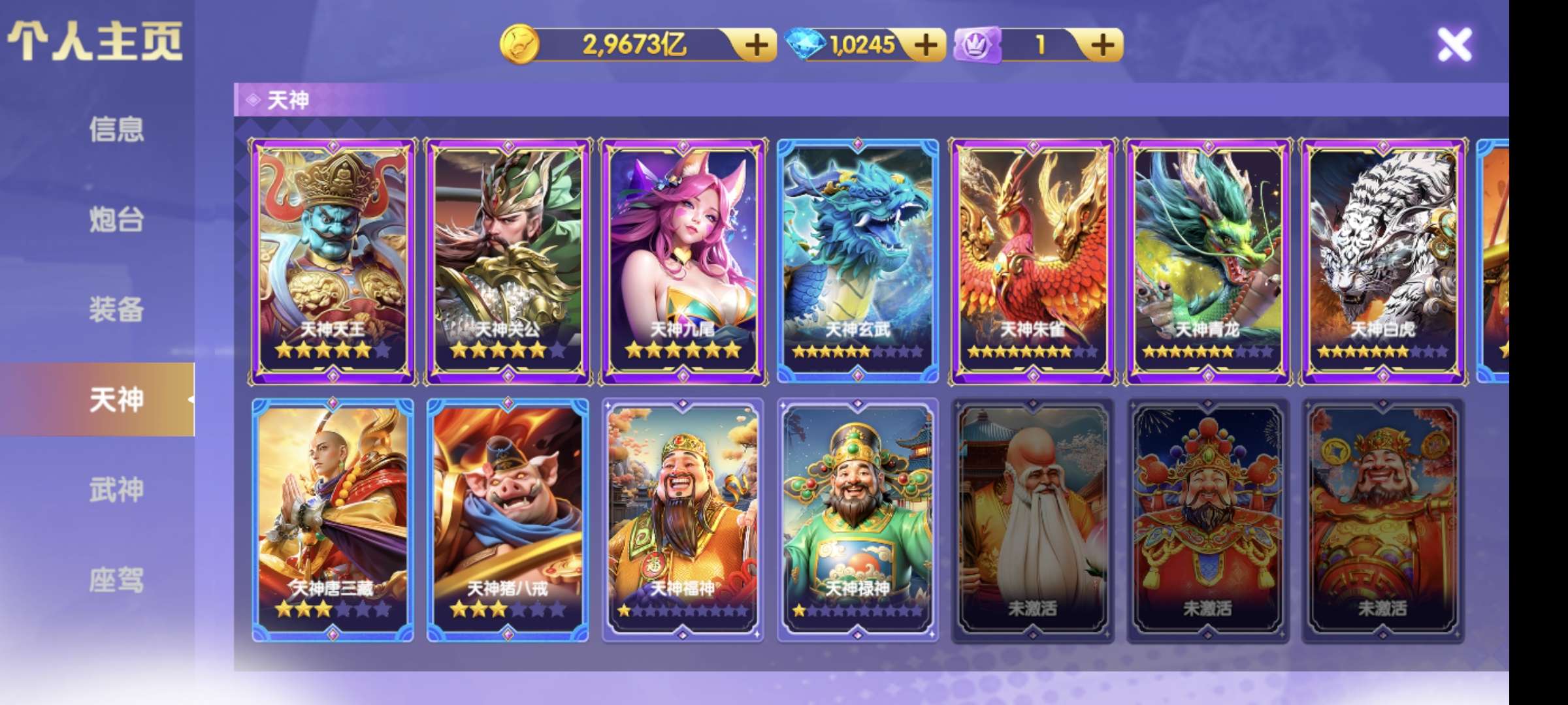 v12 满座驾 西游羁绊 天神全五星 神装6以上 武神多