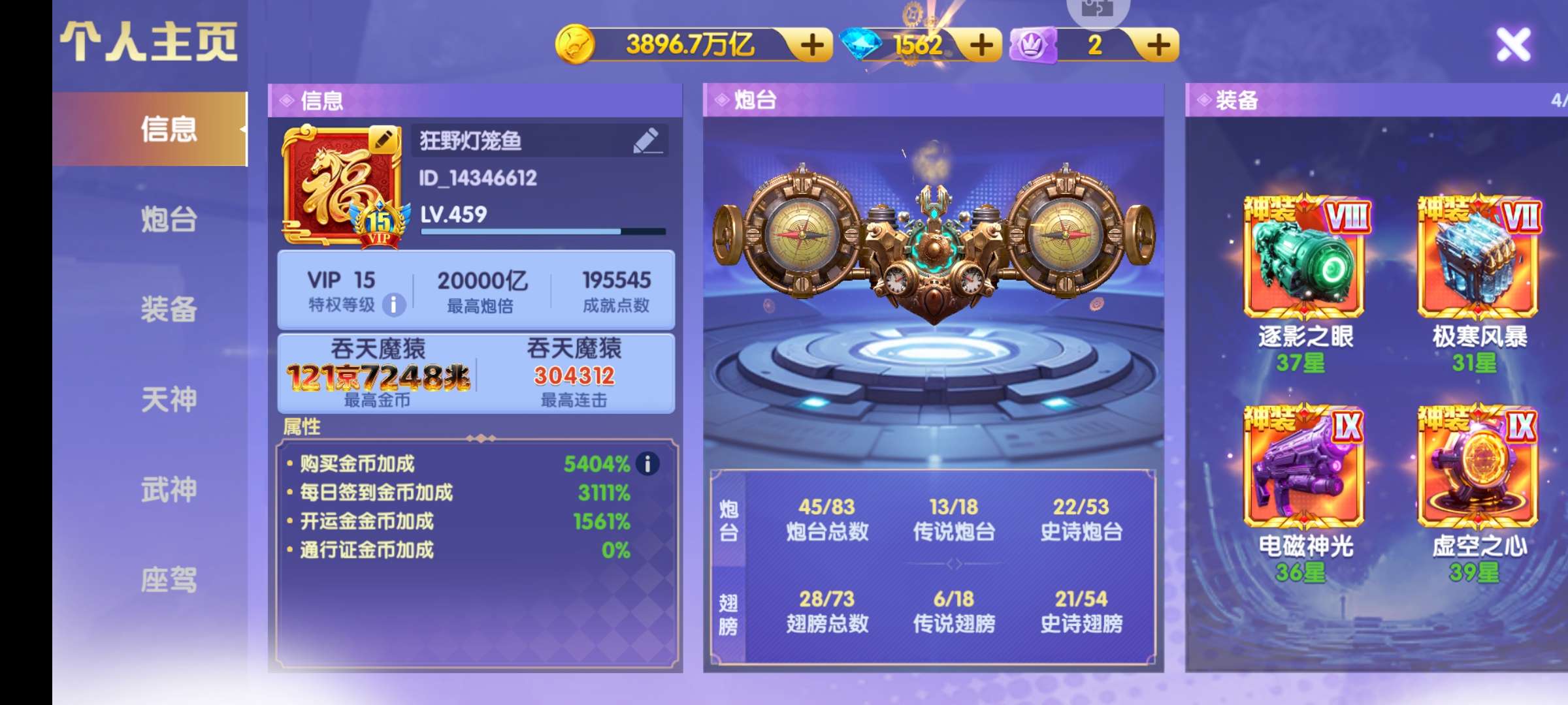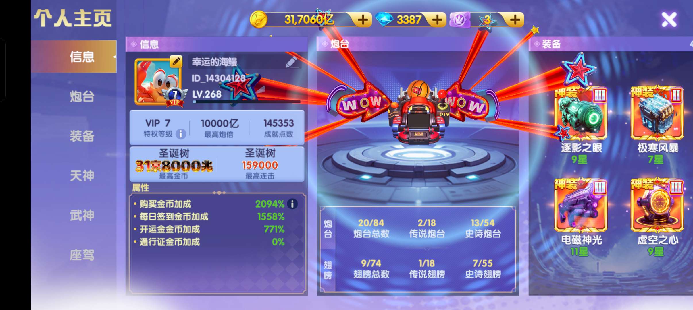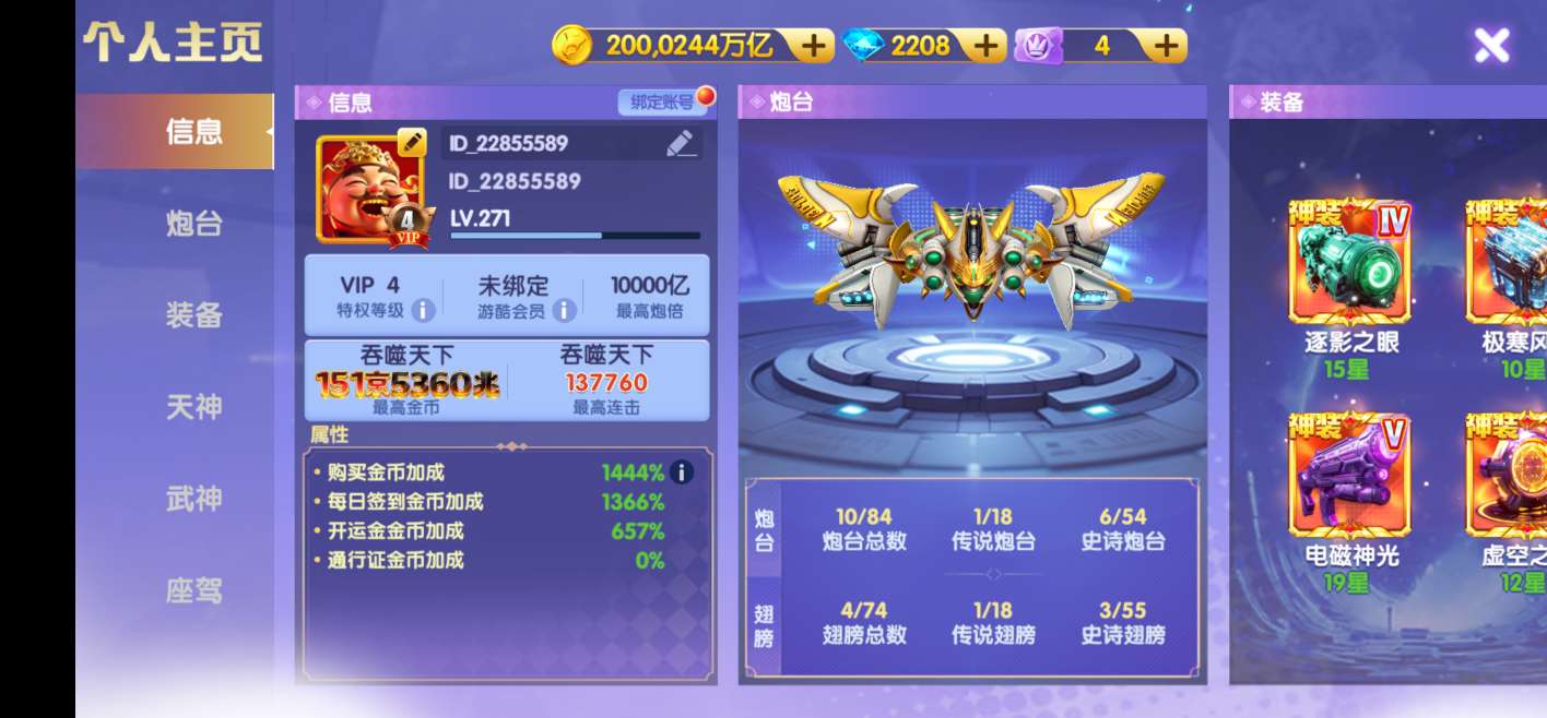 V10天神双3星觉醒700京神电25星,2万5千炮