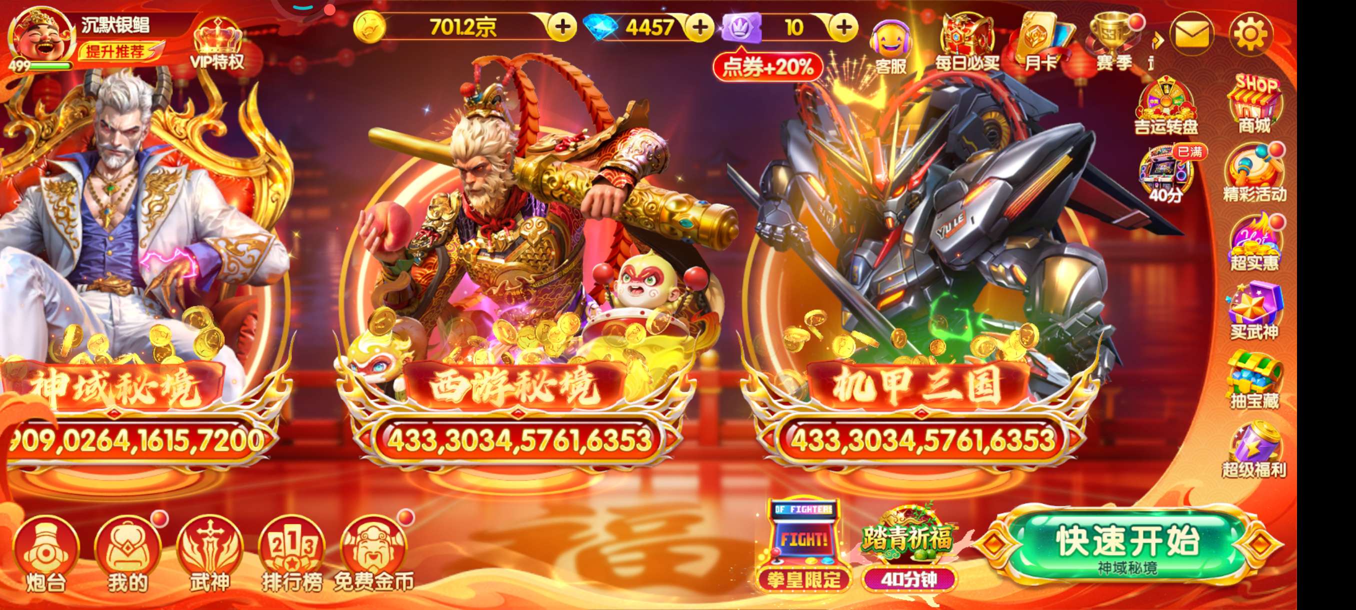 鱼乐达人小米版V7极品破产号,觉醒天王,狐狸天神也6星了,洪荒3 武神连斩1200!8开头,换绑所