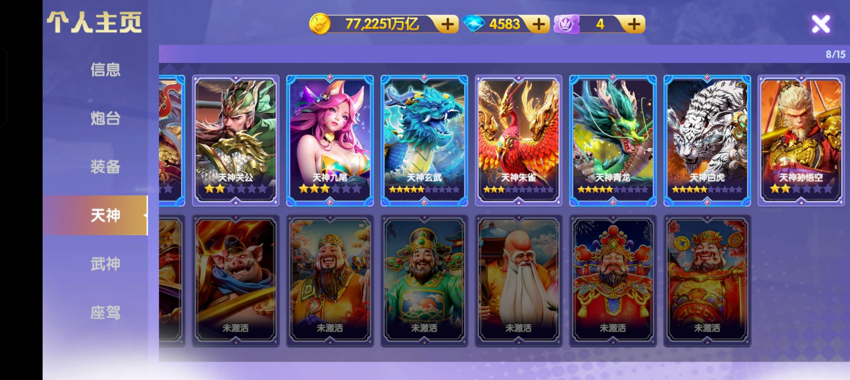 官方q破产号,3套武神羁绊,接近4套。解锁3000连斩。