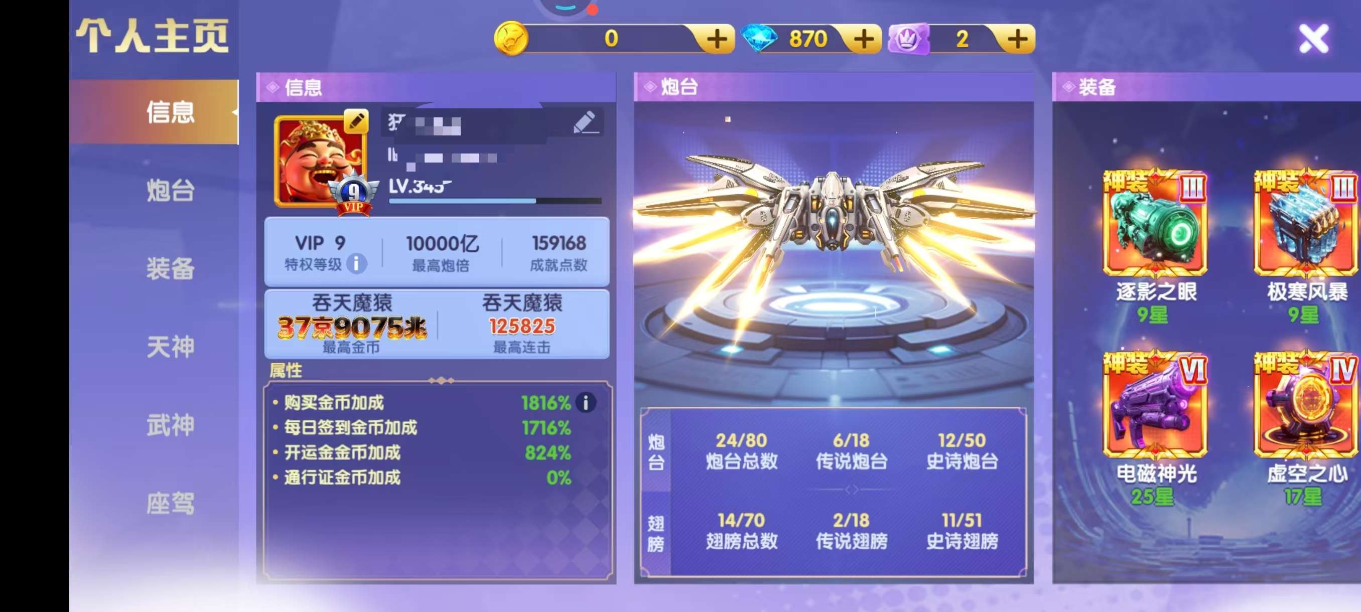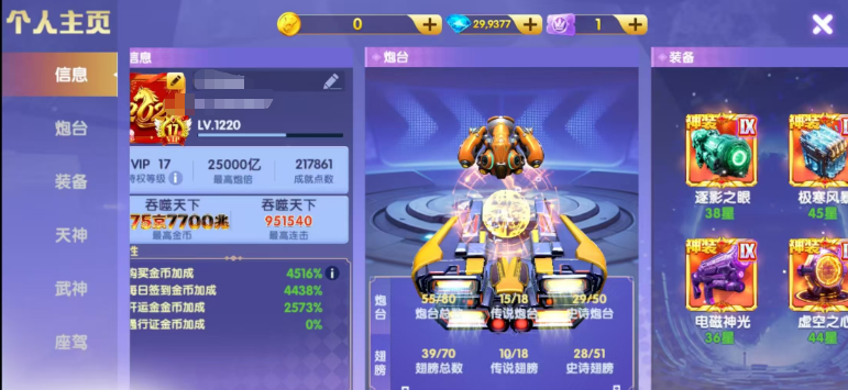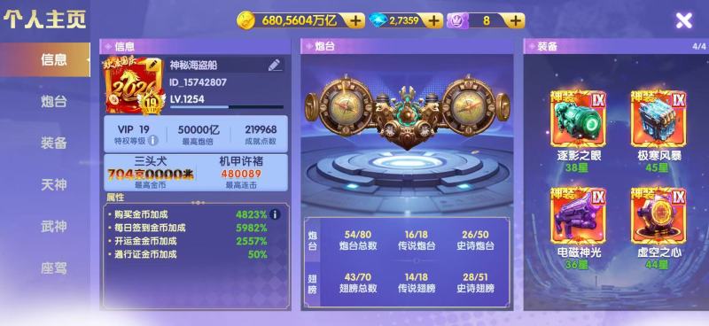 V19高V号。金币加成5100左右。