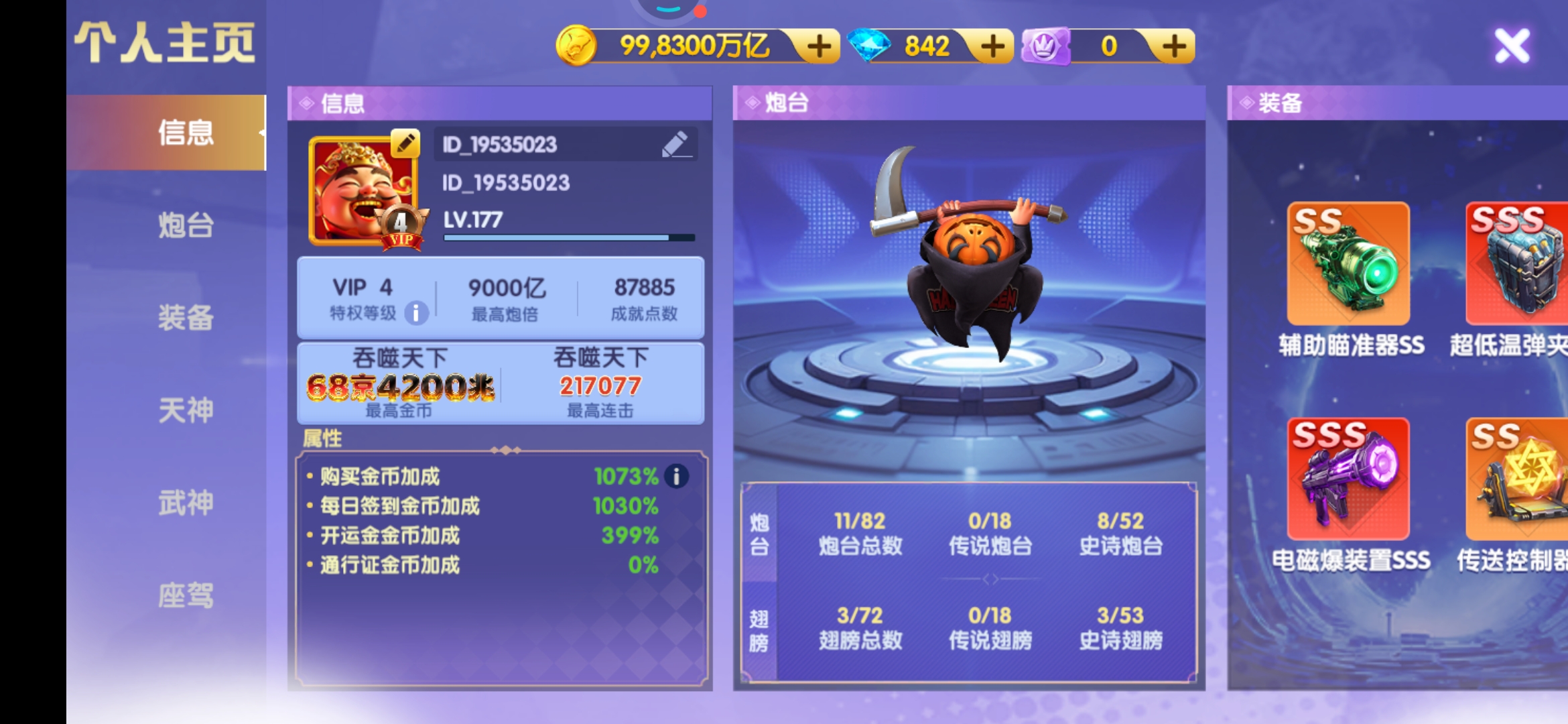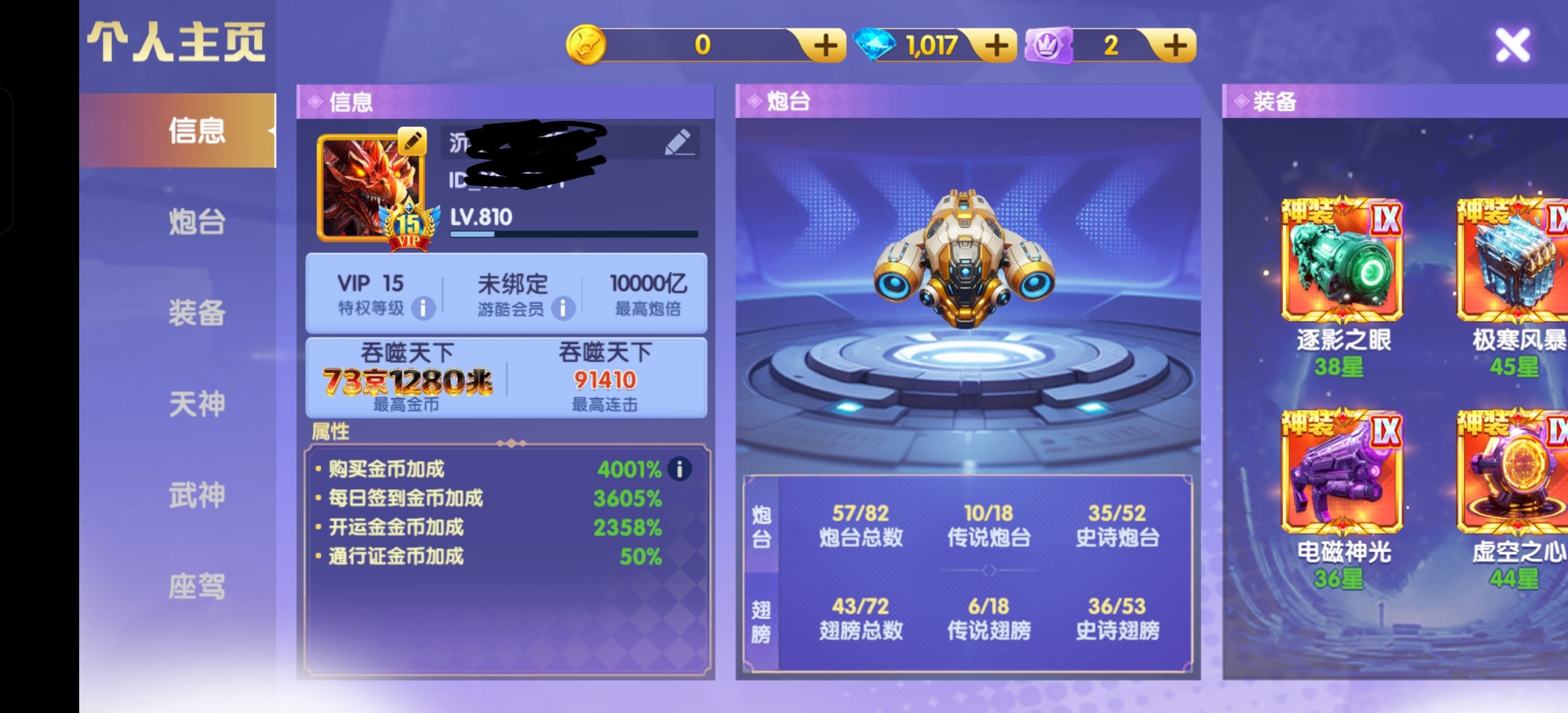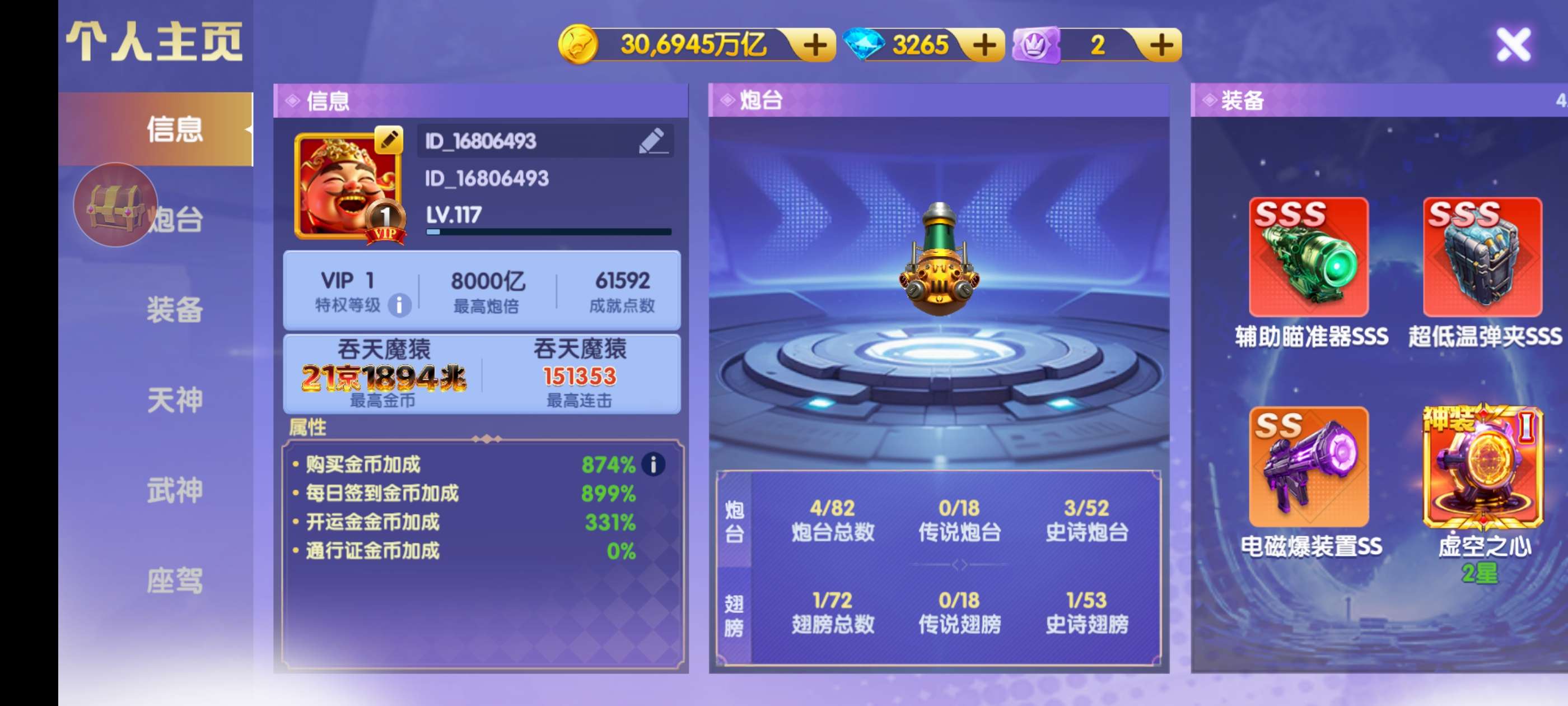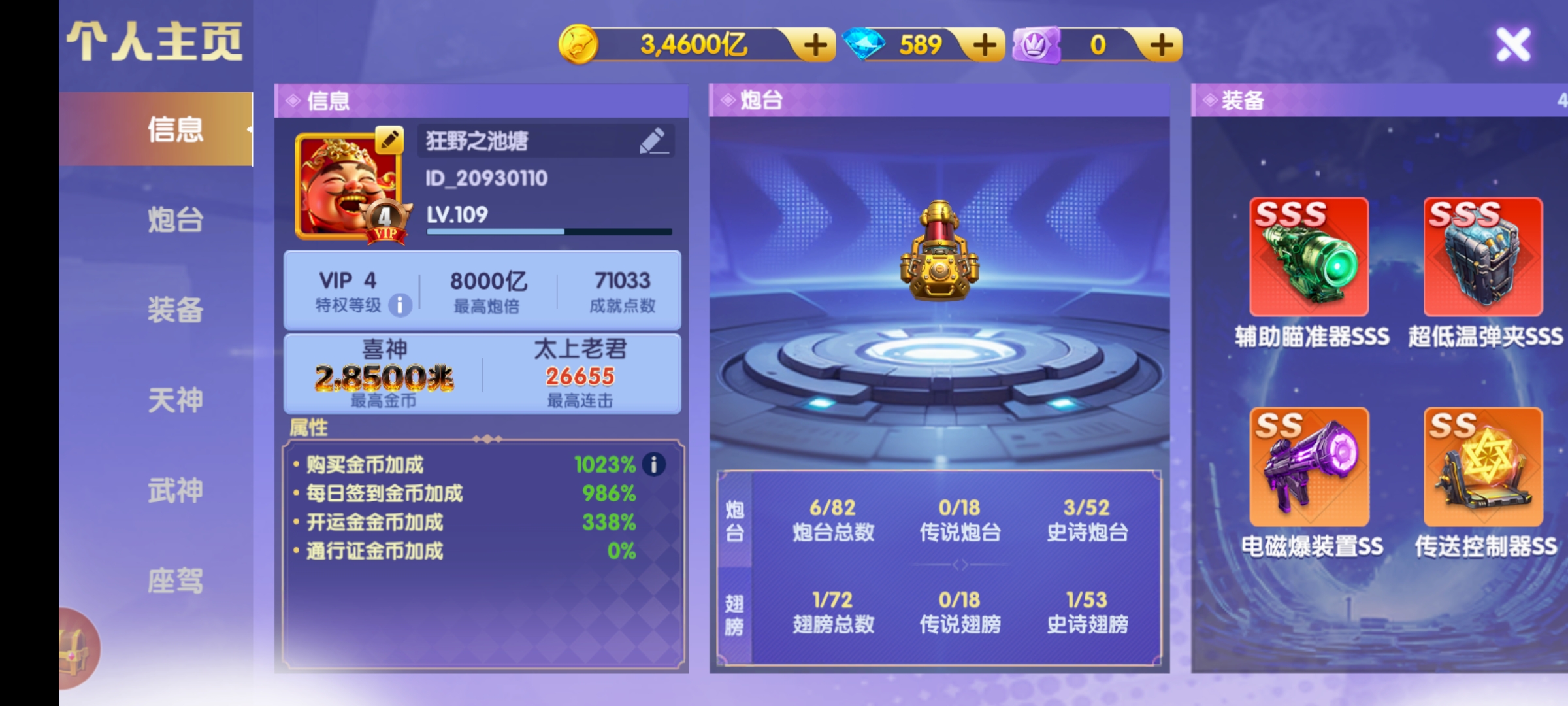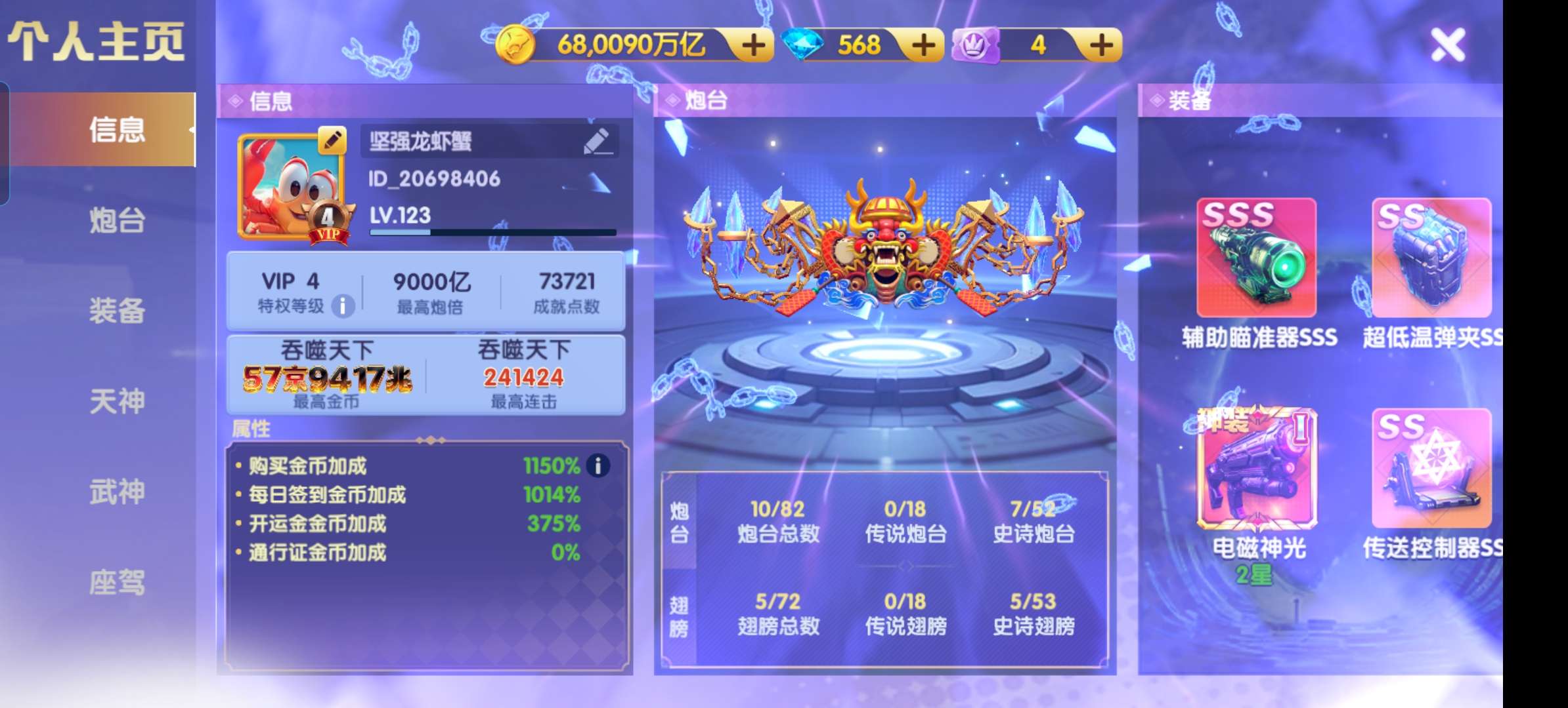 玩了四五年的捕鱼游戏!退坑了,里面武神天神都有,5级电机,304级贵族12要的可以拍一下,直接换绑,
