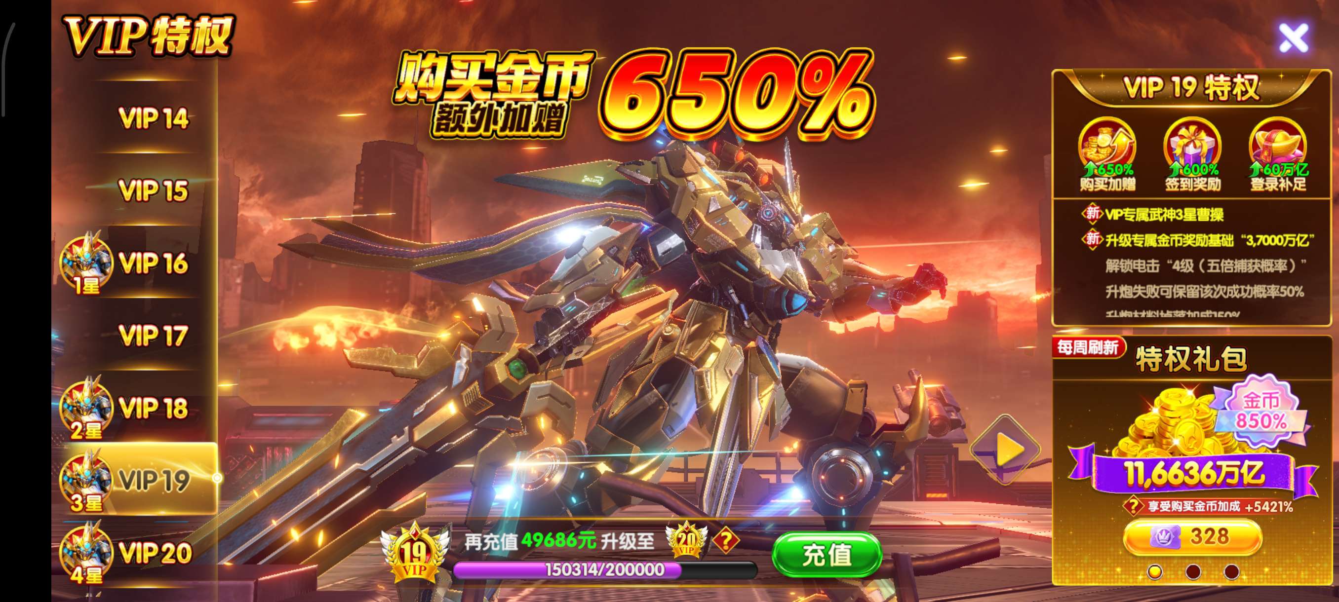 安卓华为 v9 2428加成 万炮 10天神 18武神 7座驾