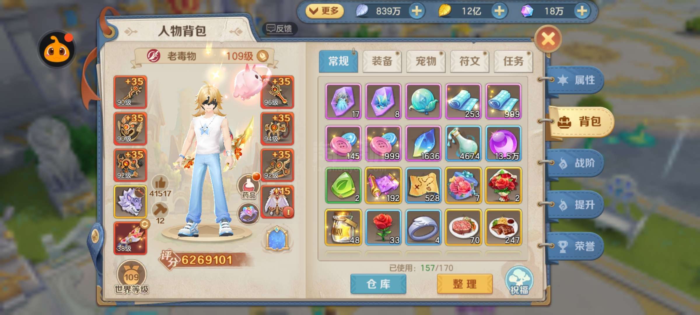 云上城之歌【安卓其他】37官服,材料号,12亿金叶子,18万钻石,还有好多其他材料,626万战力
