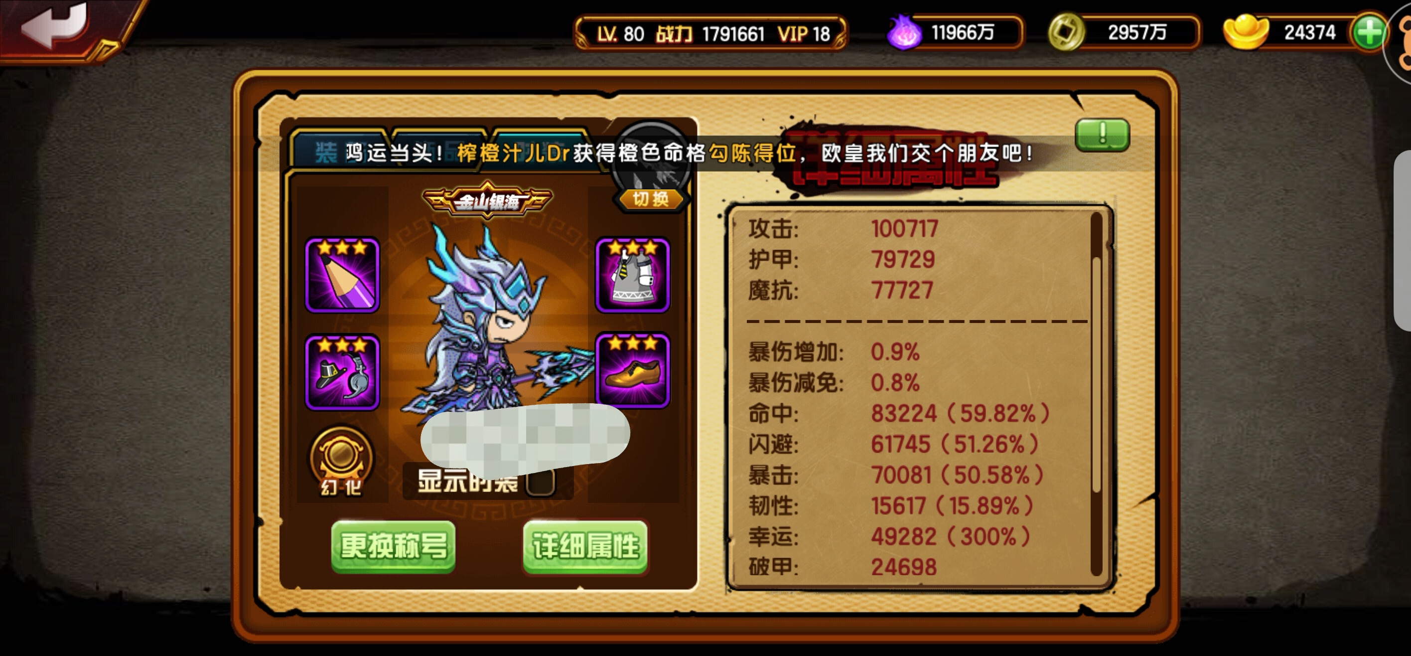 当乐65三学瓶子六星龙马三氪金红极化常满氪金翅膀有挂