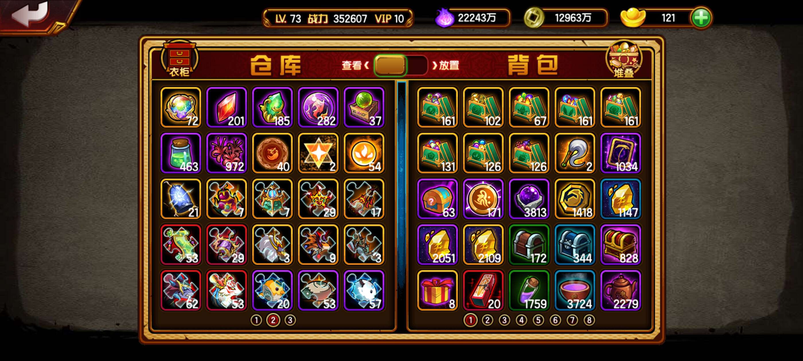 56万挂白骨连体三个角色都开了心法,自己看图,有些图片懒得截了,很少玩了,仓库的图片是糖的角色
