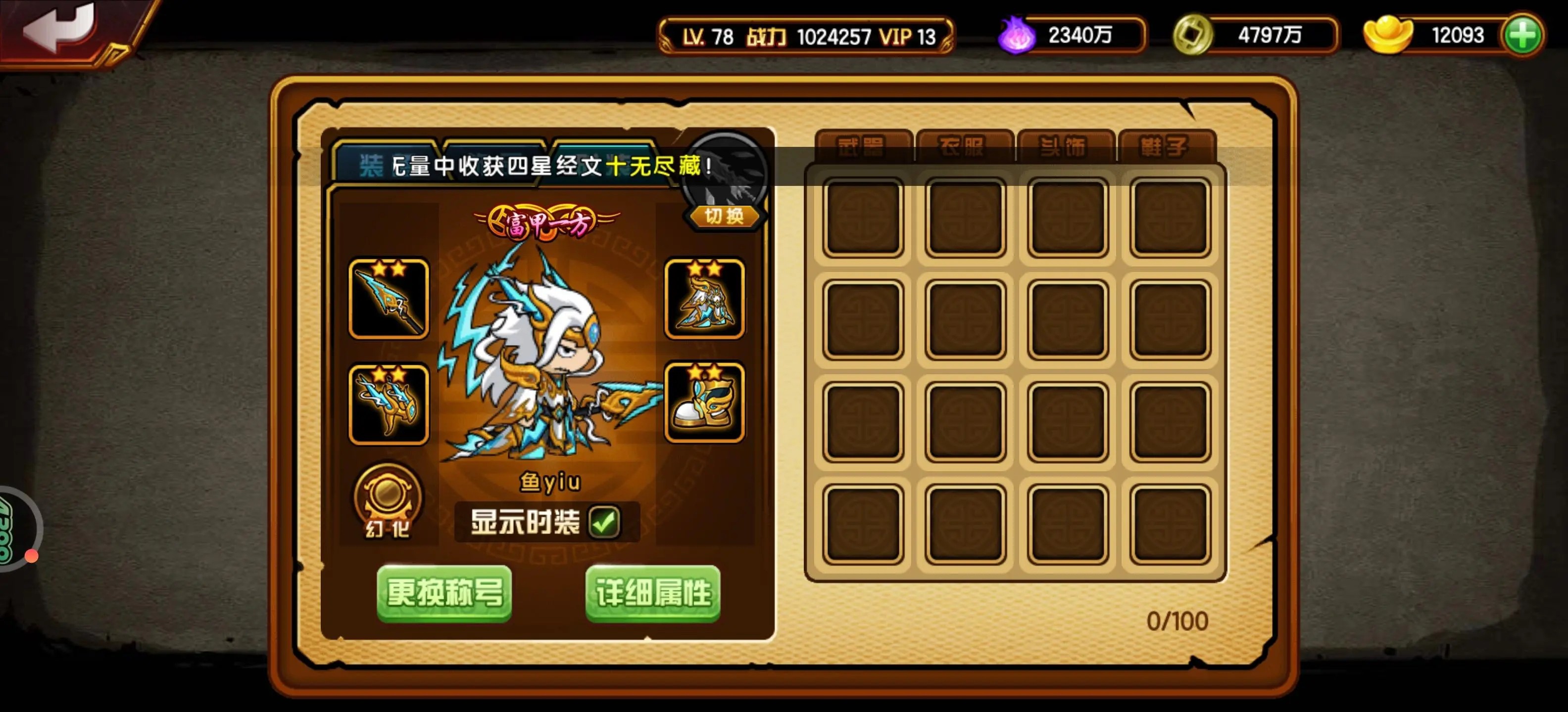 开过,125万猴,v13 诛仙剑4勇武 还有20片老虎碎片剩下自己看吧