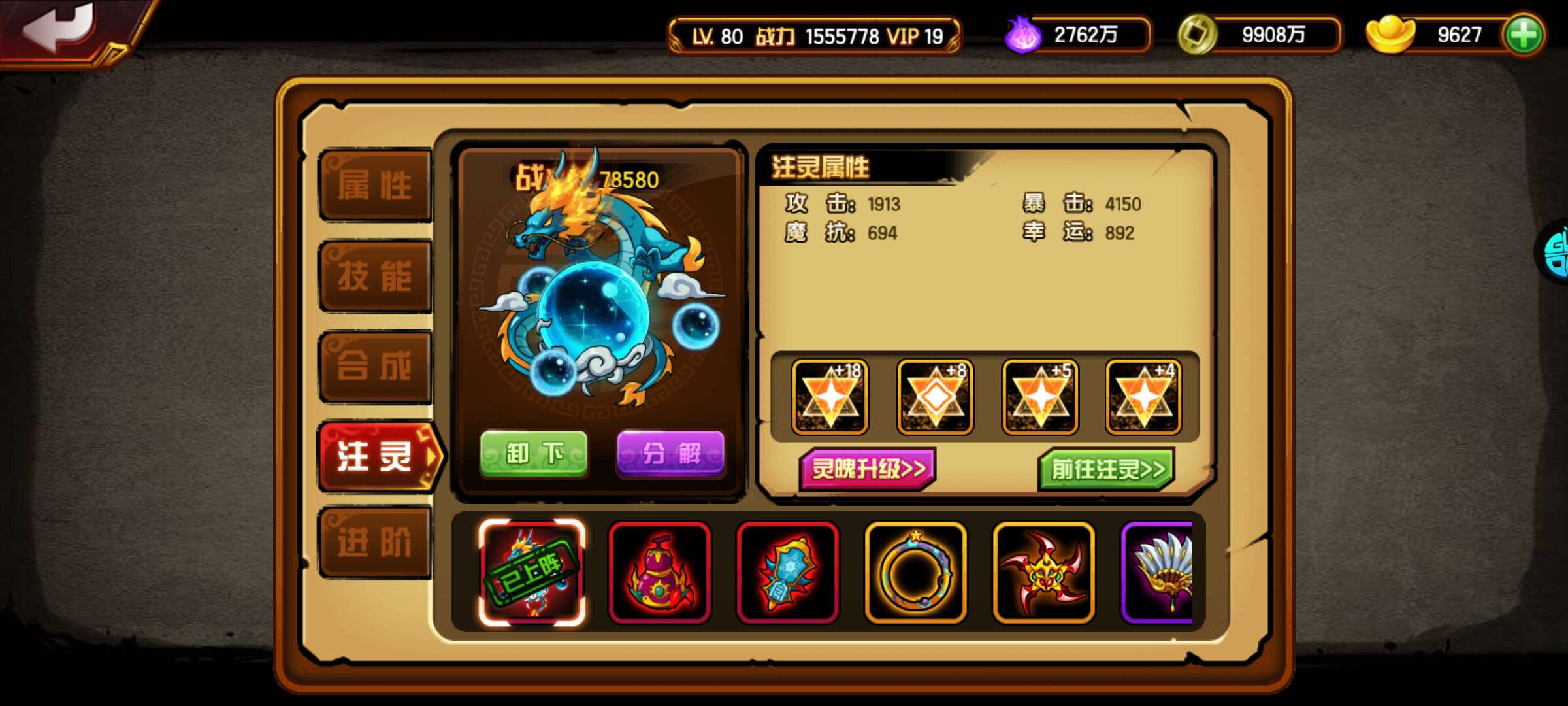 2788出当乐傲来51续4红181w神龙391 6星龙马 仓库还有141个高升极品珠子 瓶子 5