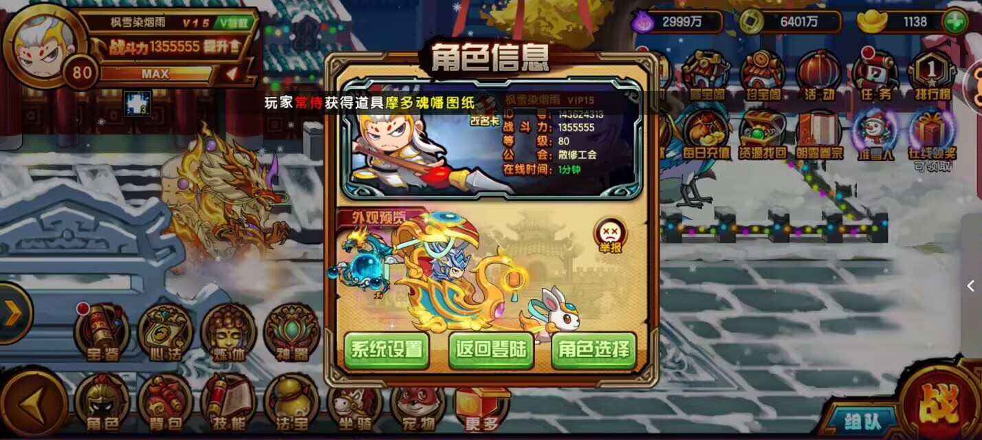 1288福利价出当乐浮屠135w神龙5星兔车 极品珠子 红极观 橙化 3学3通宝石宝珠不错 看