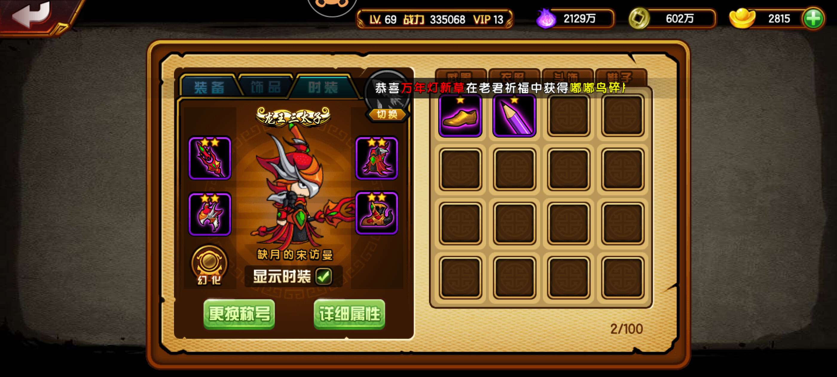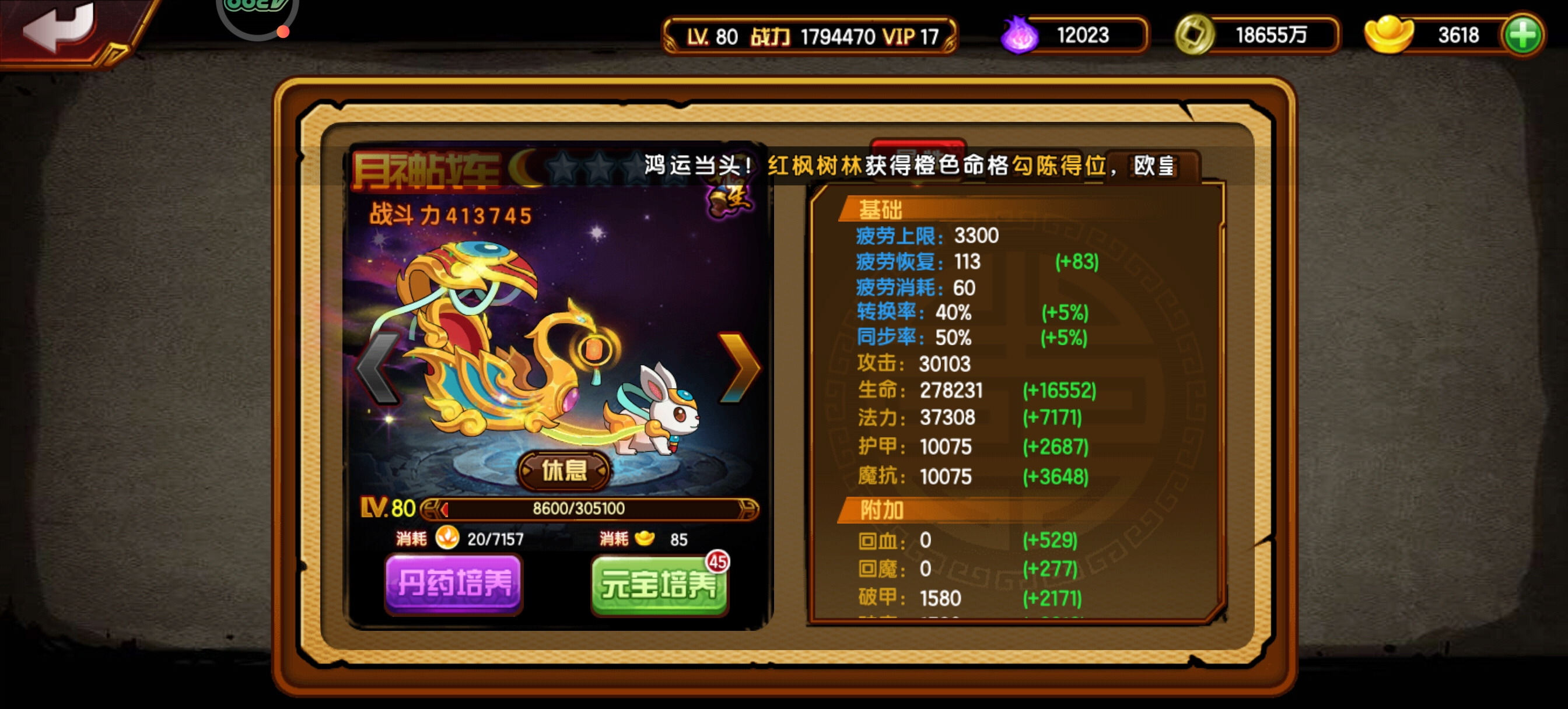 百万起步龙,4红经文三星九耀三阶蛇坐骑狐狸翅膀幽冥法宝炉子外加无双百万龙和造4端游百万鬼戒沙