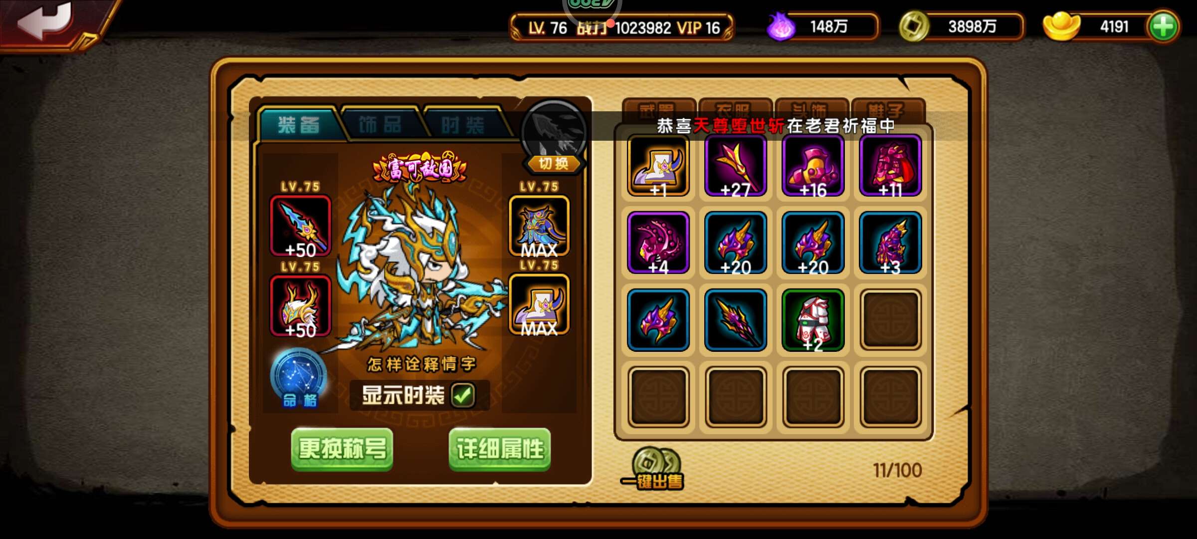 3学,6星穷奇,百疲劳回复,4剑,白龙