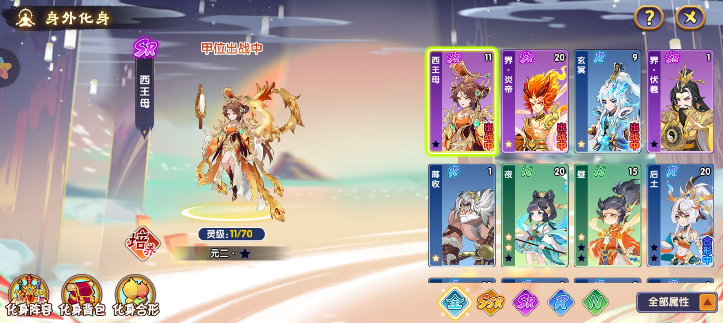 49服,双圣 灵物蛇,三魂灵能满配,SR都元二,差个西王母,有3个凝元