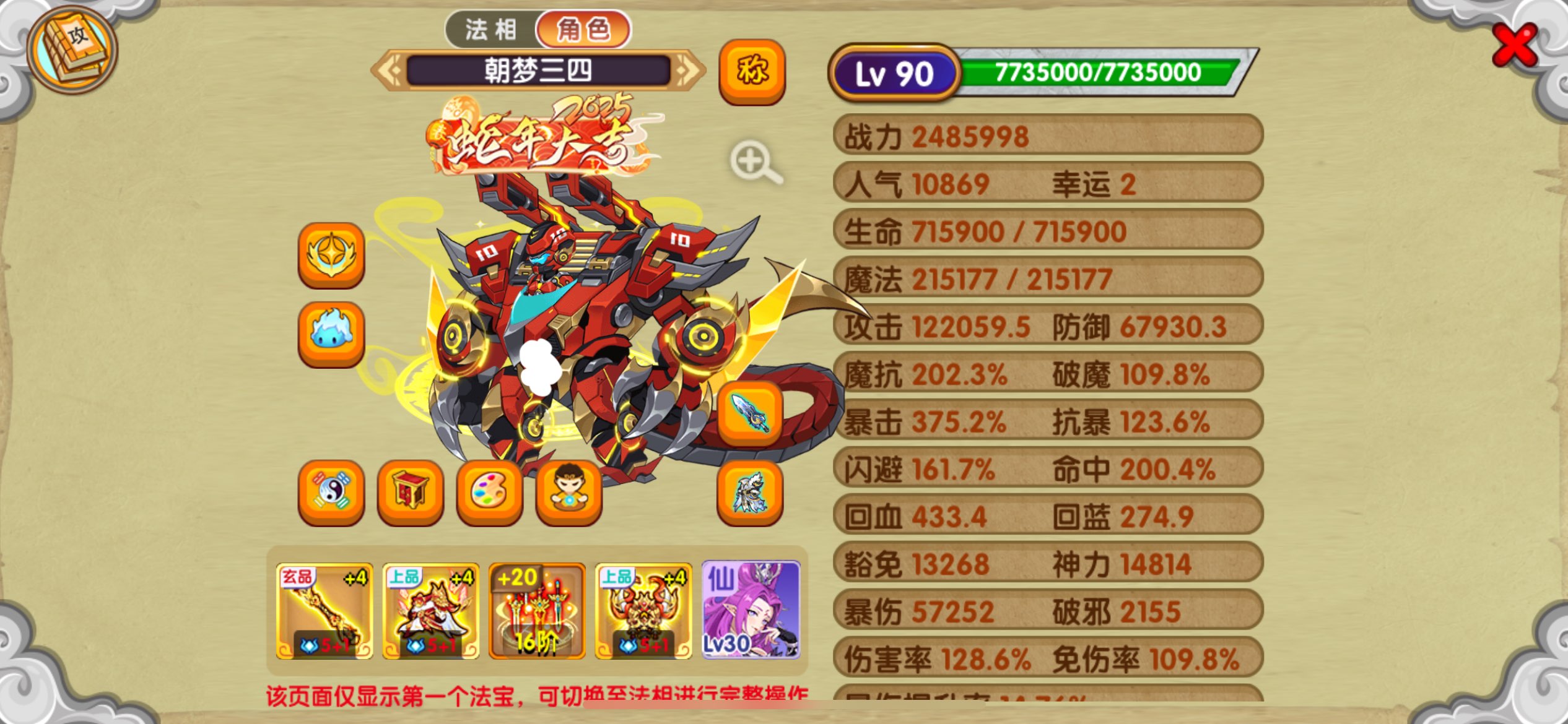 造梦西游OL杨戬本命神90级70w成品号稳定进极北,独家24件八仙15+10阶的极品属性全角色任选。