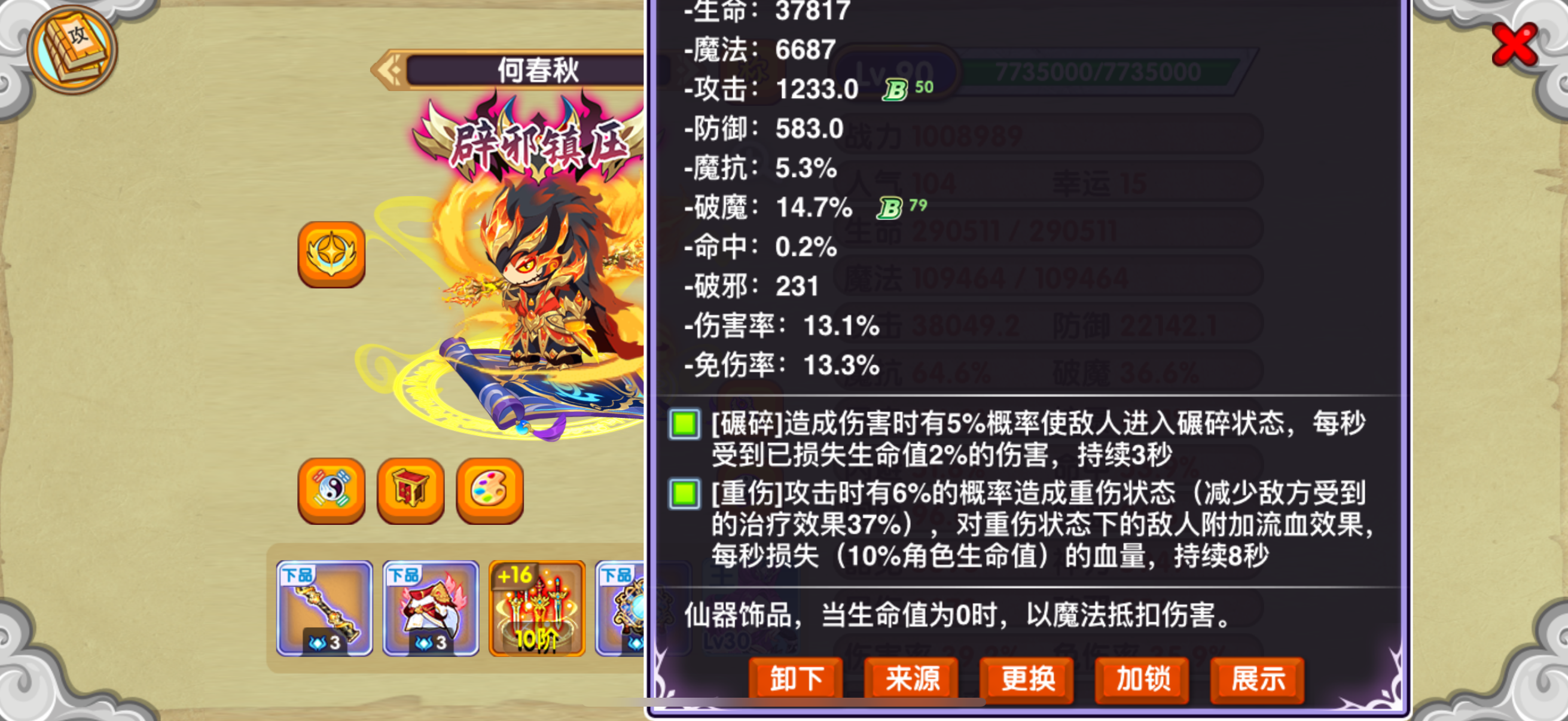 310w战力平民高属性无战队,史诗魔抗珠1加30级战队还能提属性武器衣服已满120,49账号无死绑