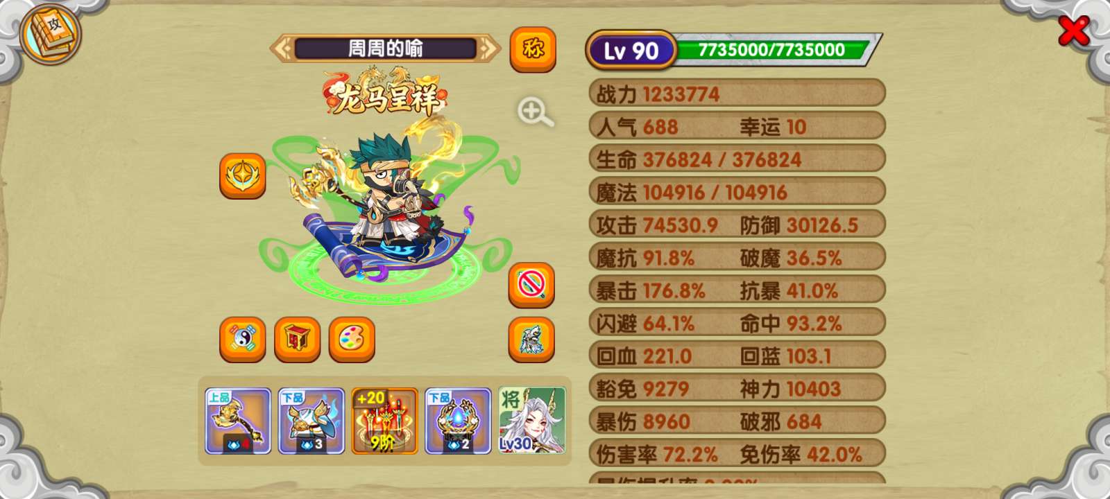 便宜出售二百万战力账号