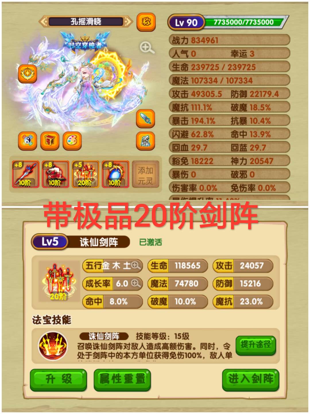 造梦西游OL20阶剑阵带一些真灵合成材料成品号稳进极北,有杨戬本命神,昆仑山己跳7000层