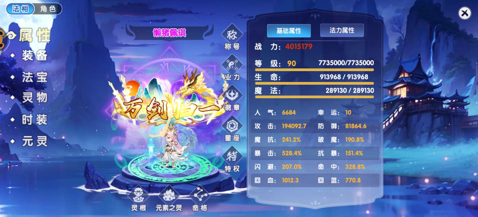 当乐5续万剑氪金龙氪金仙术氪金蛇400w准双尊紫霞