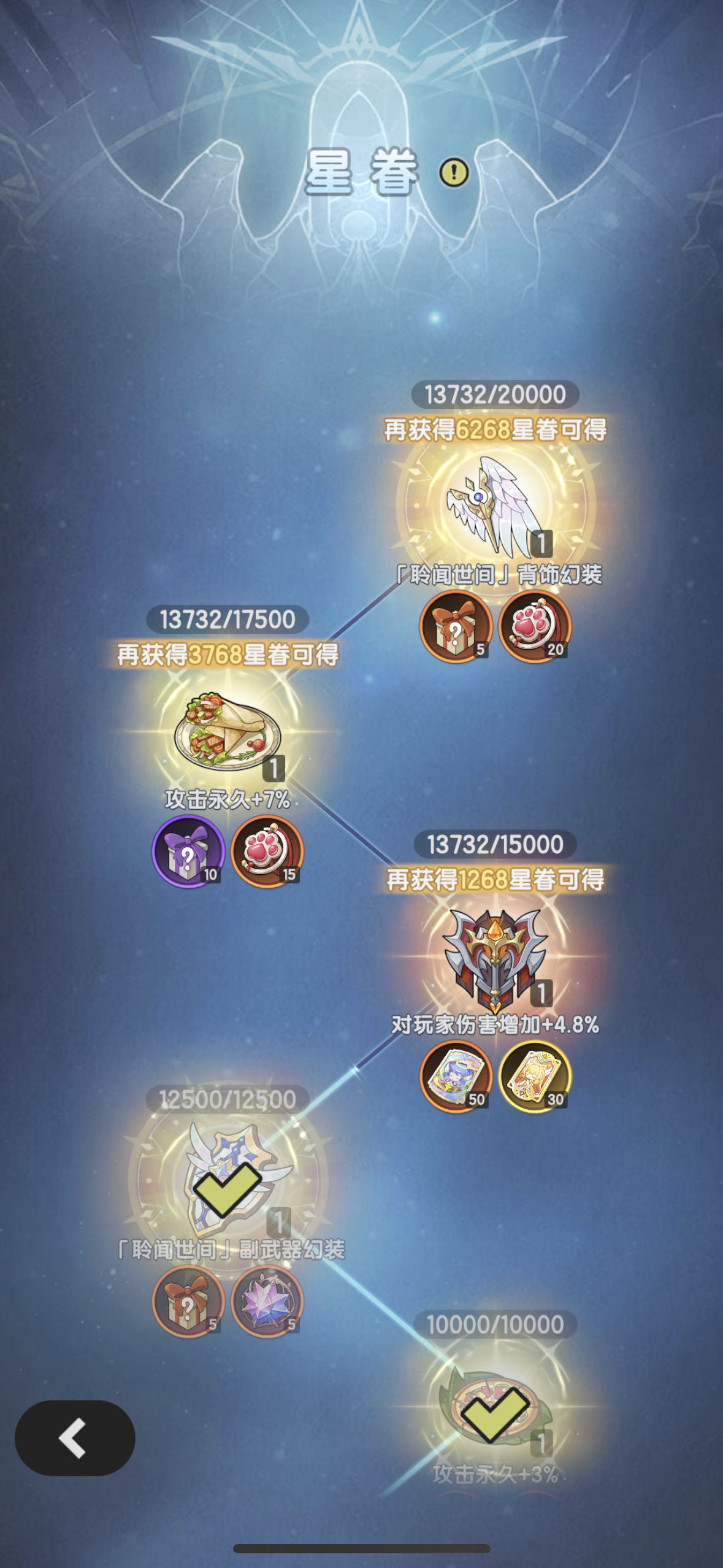 官服随机区970抽:10000晨星+560星愿+105结缘+400稀有+158传说女神44史诗女神