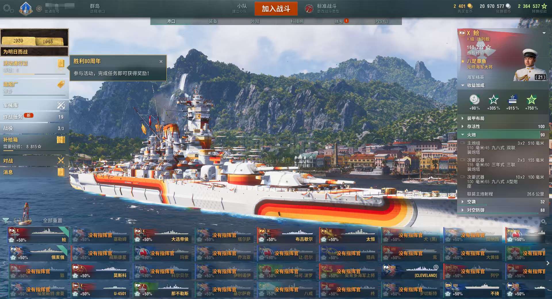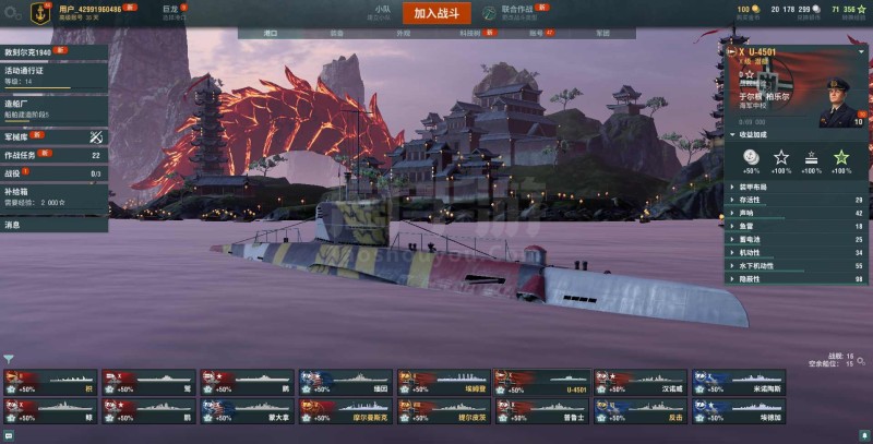 战舰世界【端游】鲲,雷神,喀琅,太恒,让·巴尔,4钢船/斯大林、罗斯福、敷岛,自选/52条10级,7特殊舰长,造船厂