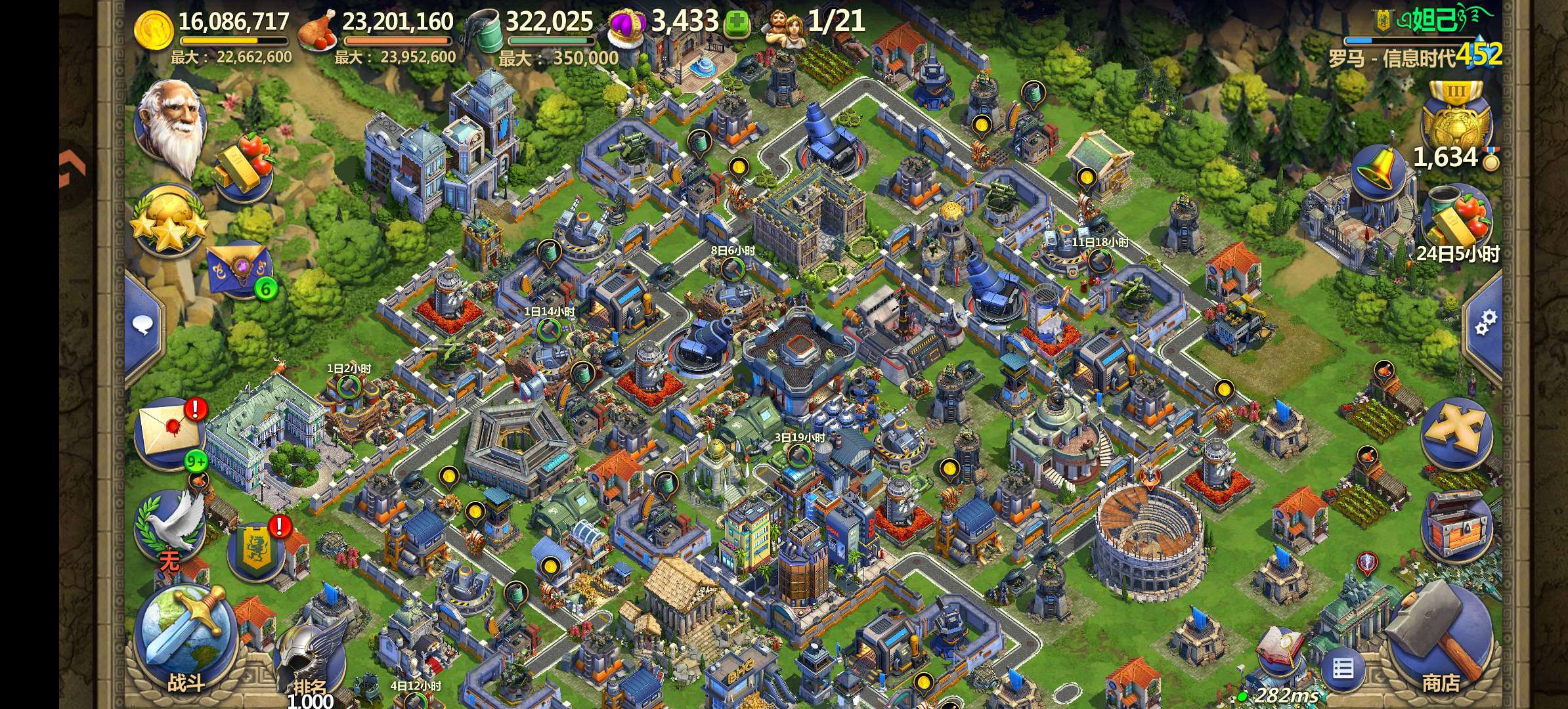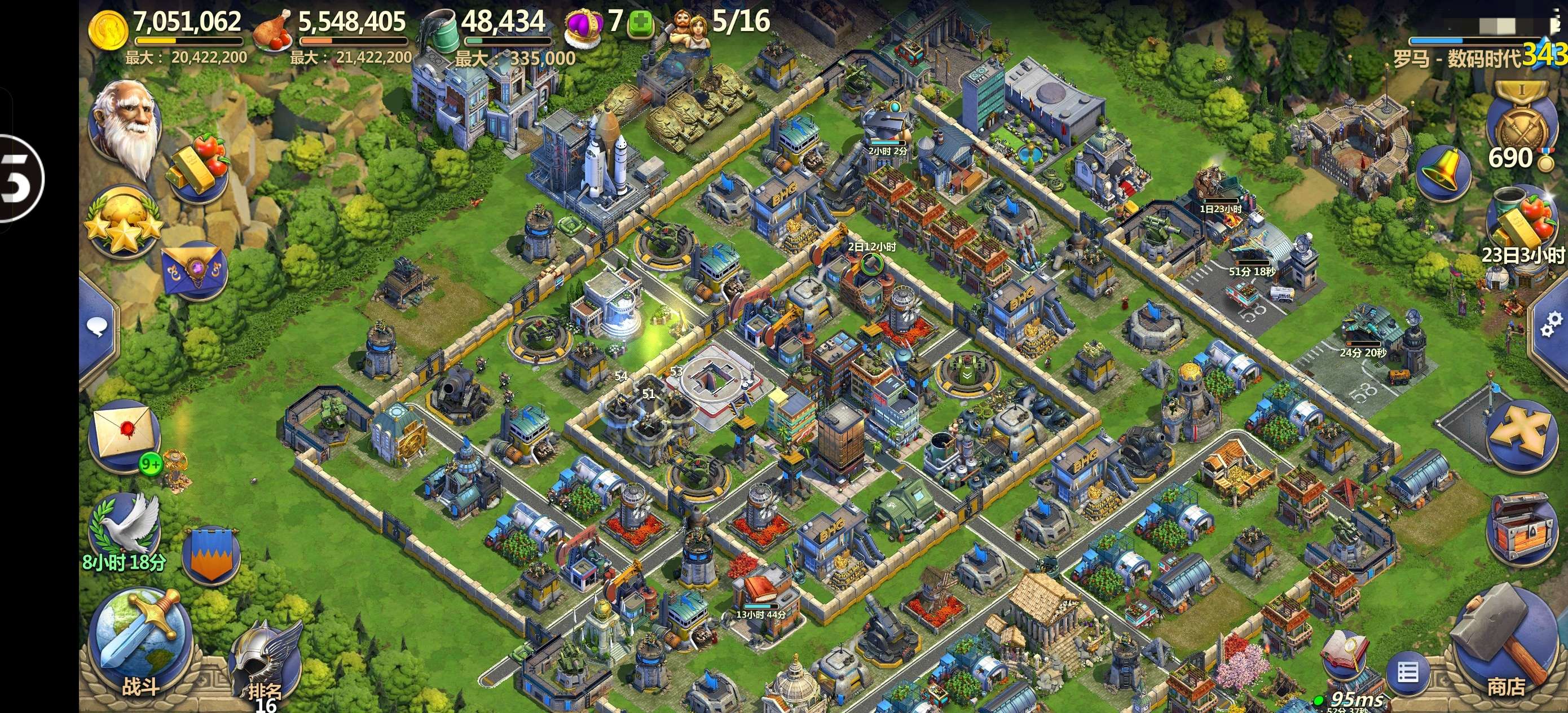 神枪潜力413级信息,可转移,放心号。有庄园,该升的都已经升满。大学满减cd,战术兵多。英雄等级高。