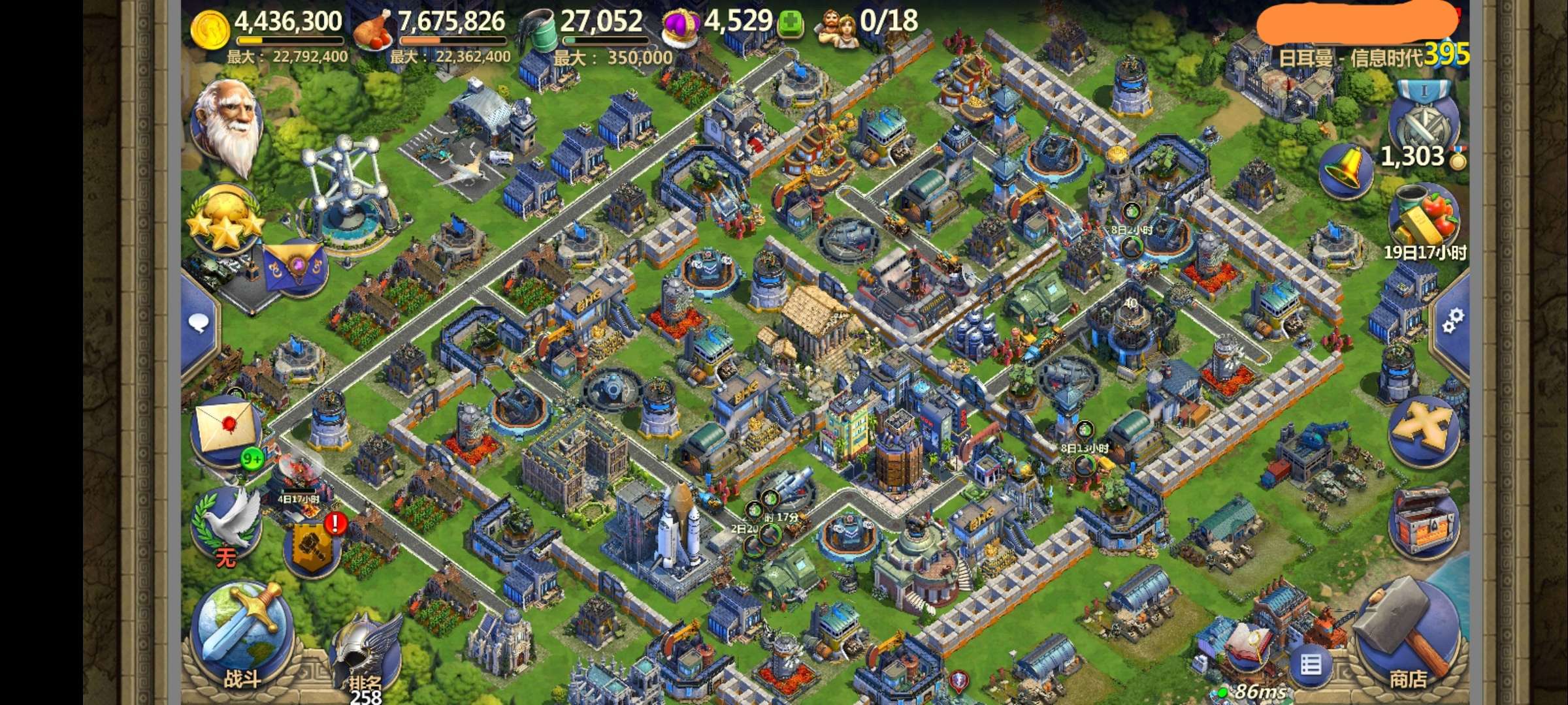 工业时代,22人口,85级!