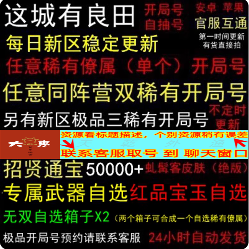 【老区随机区】虬髯客+(3-6)招贤令+2.4W招贤宝+3W+元宝红品宝玉xN(初始章节)