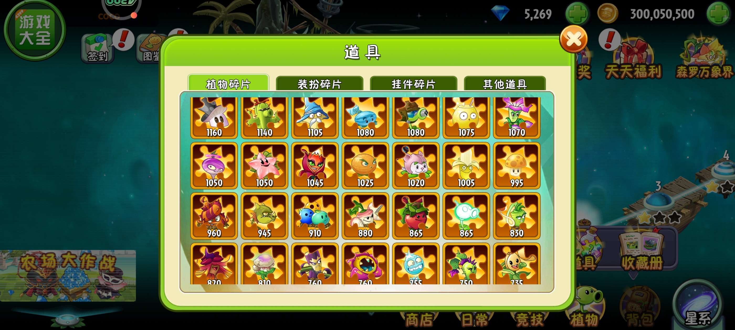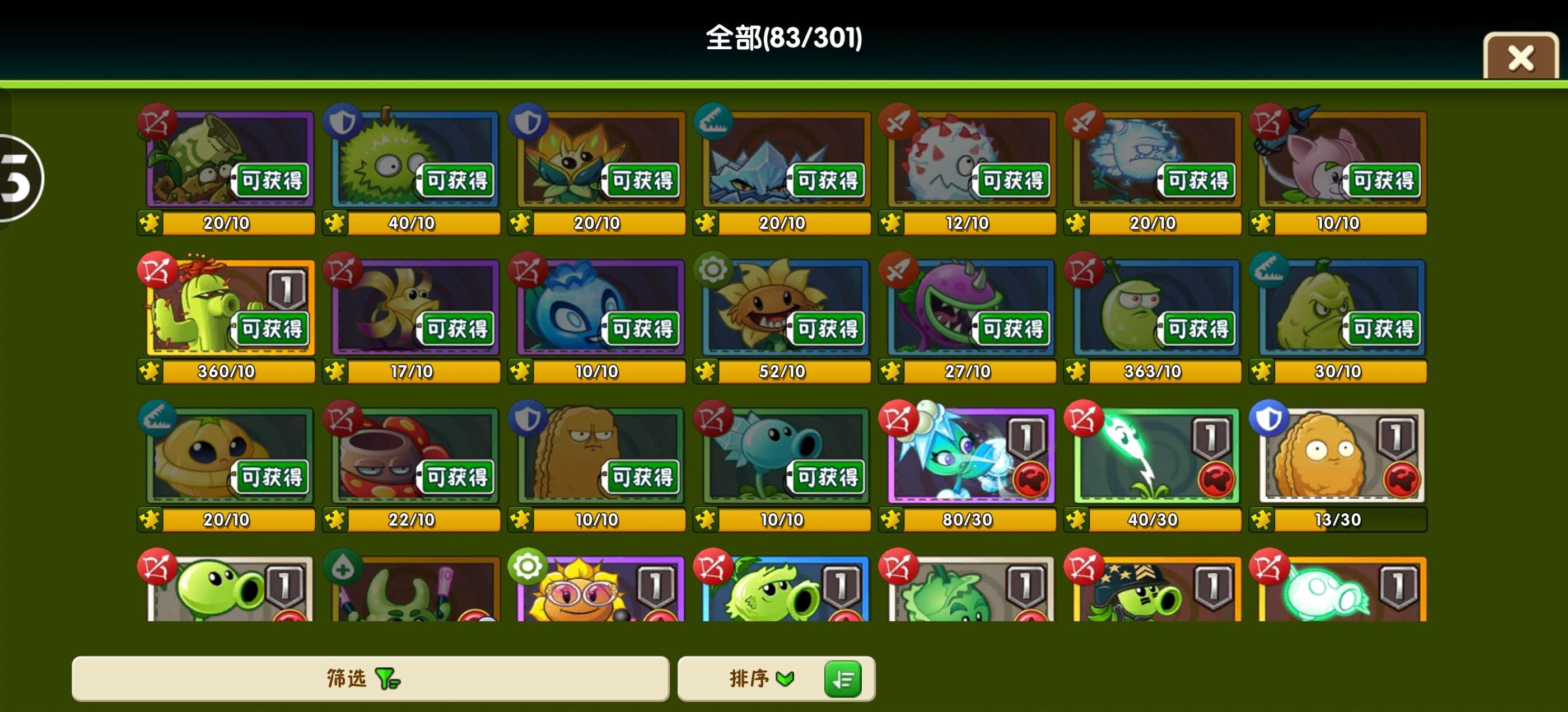 有萝卜大哥等植物超装所有模式爽玩,植物只差5个,中间退坑了一段时间。