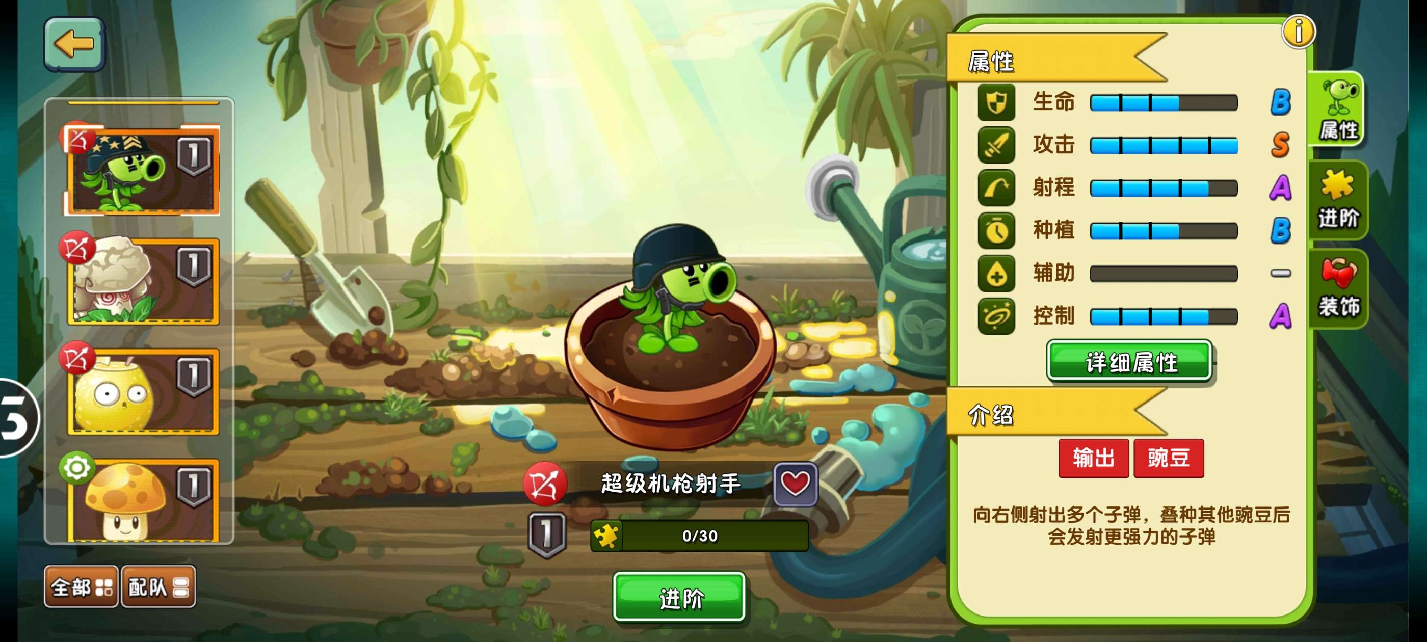 成品号,13神器(魔豆,街机,一窝蜂等),竞速植物都已升阶