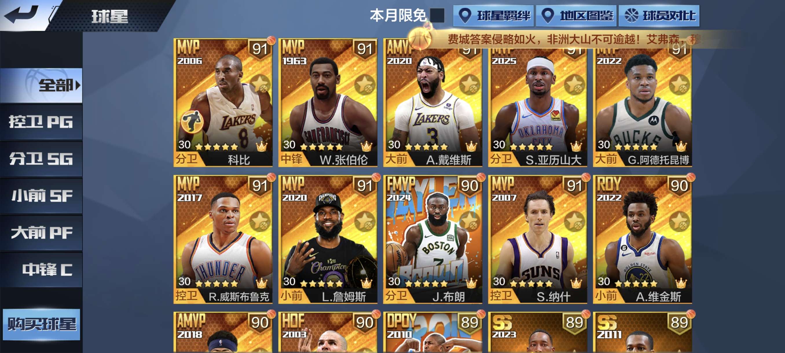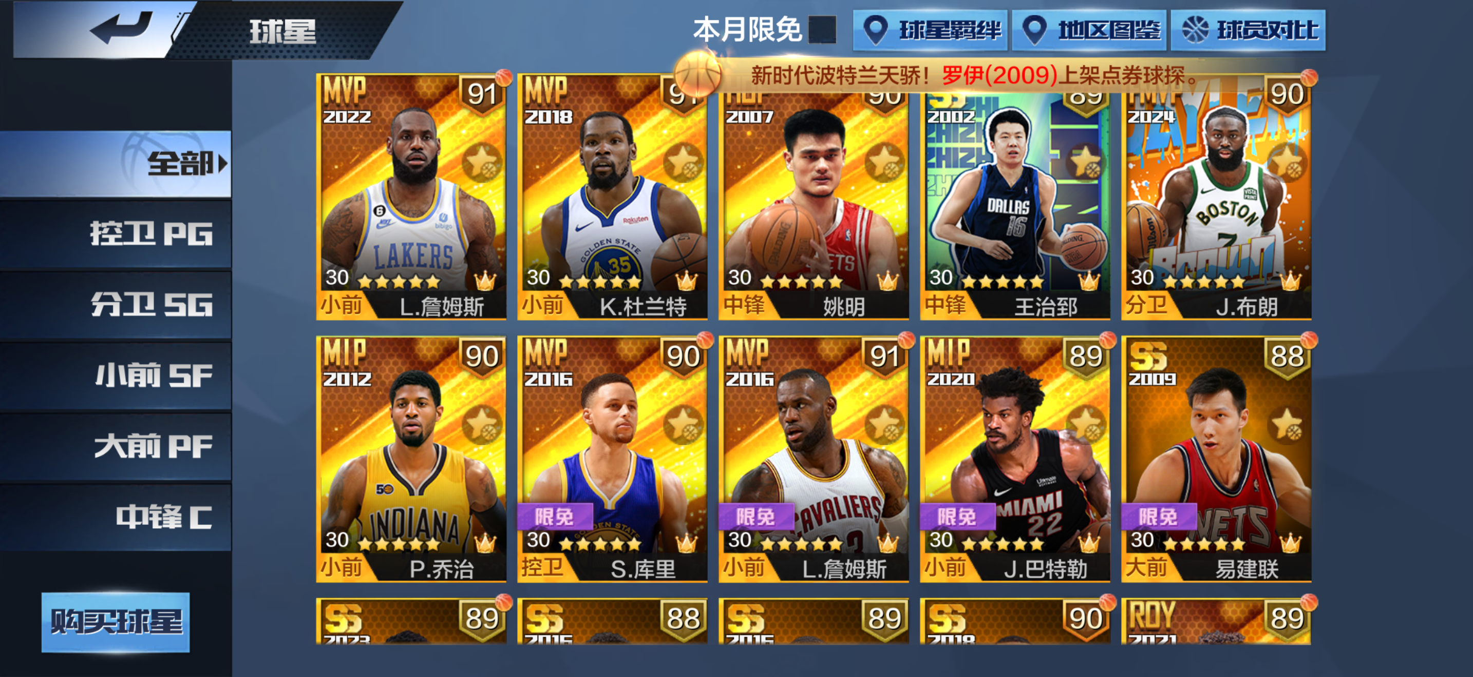 俩天选俩硬汉,有新詹和布朗,还有不少点券球星,可小刀