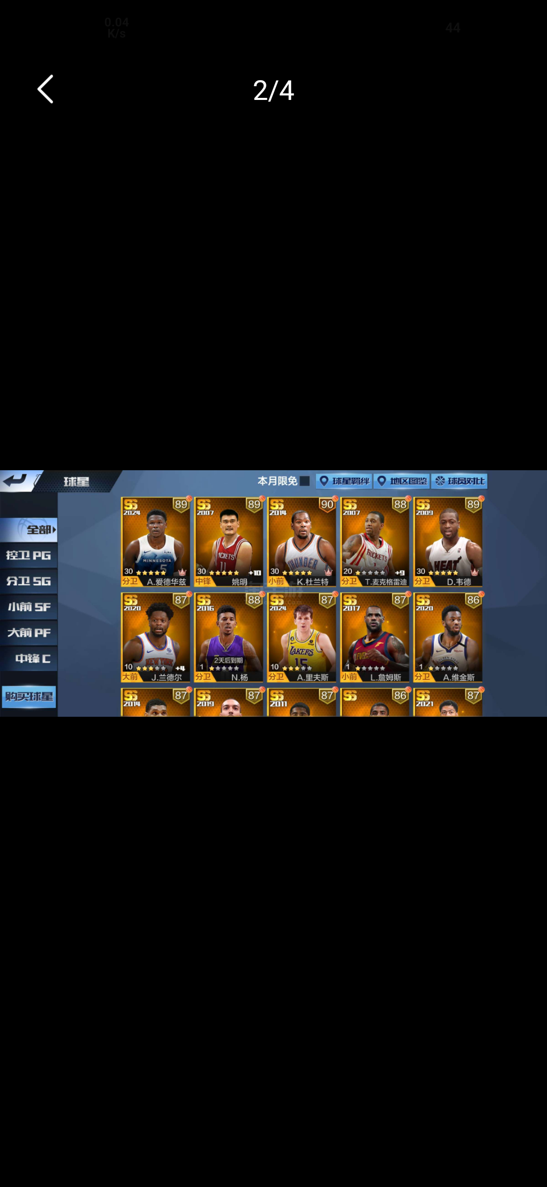 四天选新库,浓眉,勇杜,刚加强的哈登.24强力点券大头利拉德,大叔,戈贝尔等,有典藏皮肤,可二次
