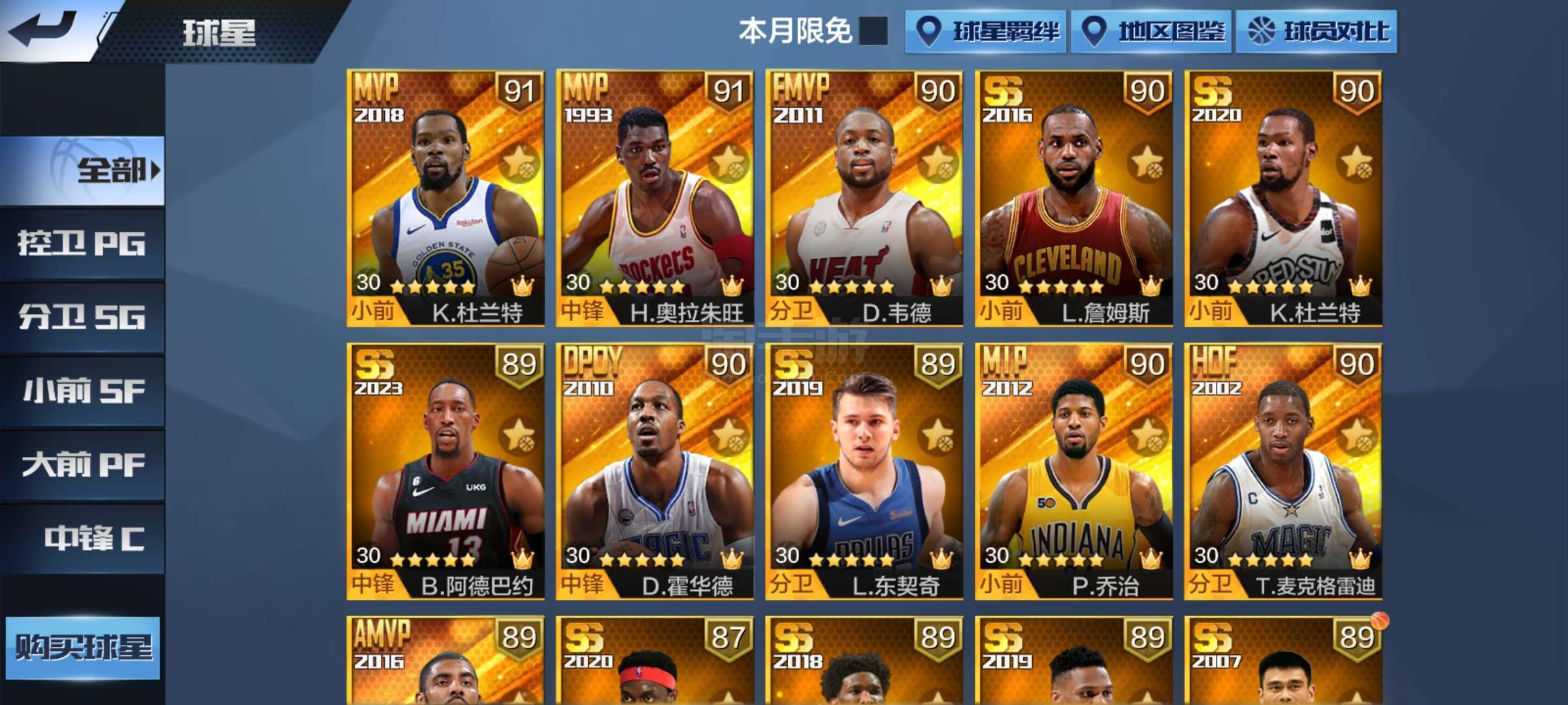 满配天选麦迪,天选科比,14点券无解勾手贾巴尔,全力詹,艾弗森,欧文等,特效多,衣服多,重生卡若干