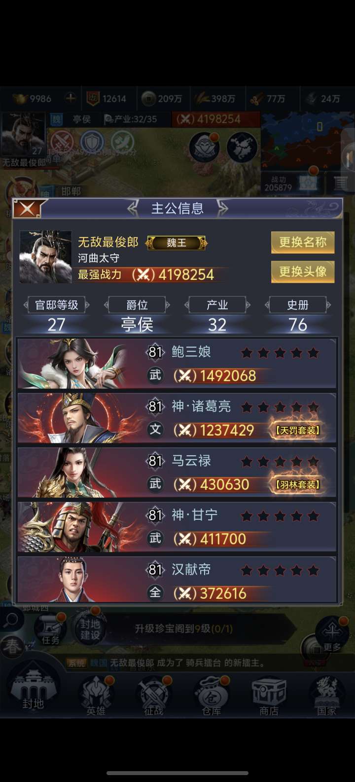 小程序官服,一合13天,世2国一,红鲍三娘,天罚神诸葛,种子全齐,箱子一千多个,跟吴国合作一合