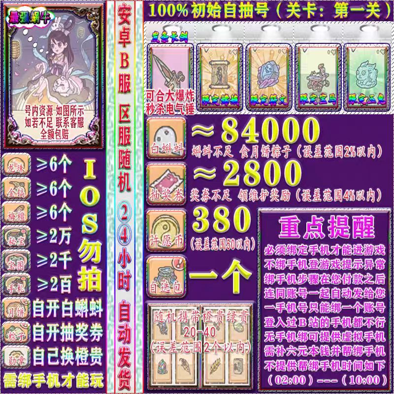 带限定玉兔 嫦娥 宝马 符文 启示之眼★80000+白蝌蚪★2200+抽奖卷★10-20橙贵绿贵