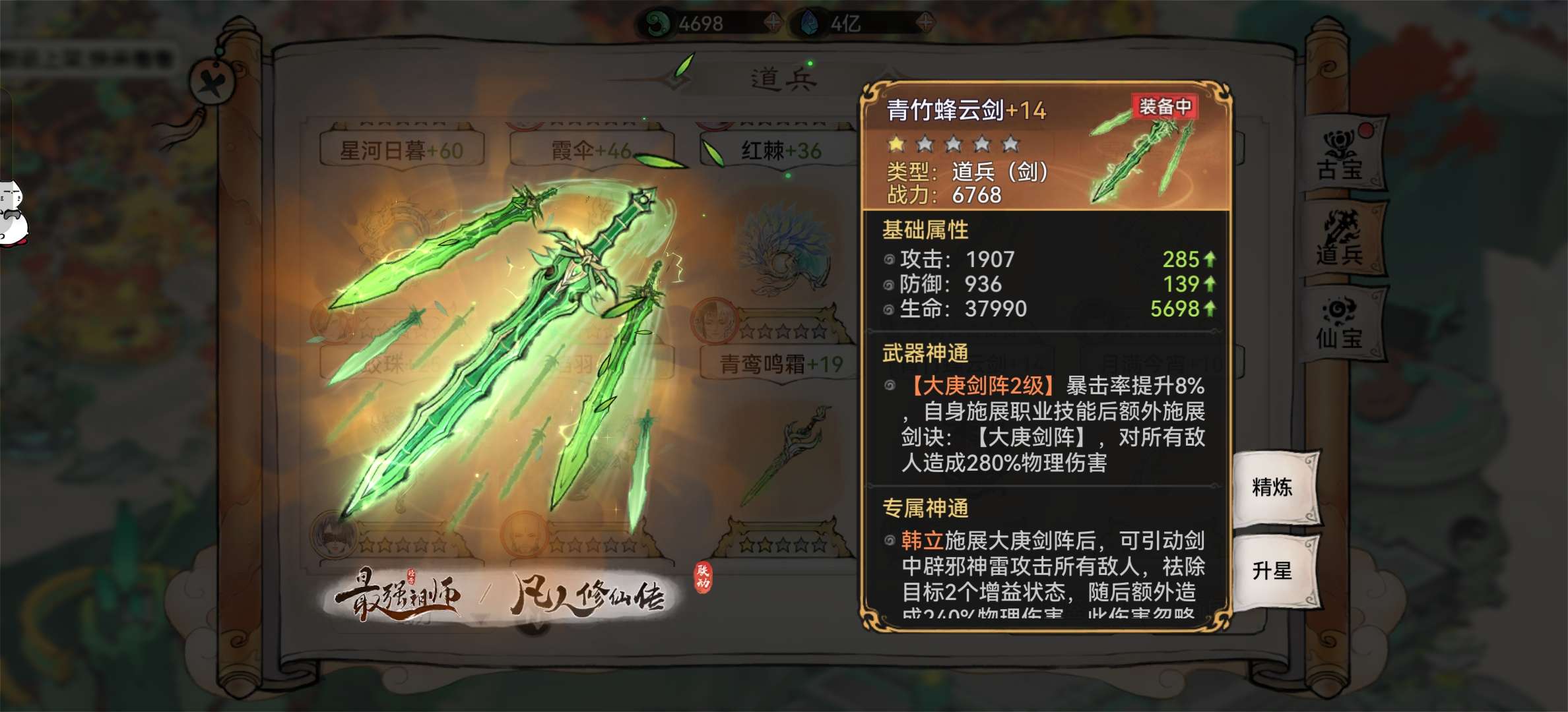 氪度2万 满星韩立道兵 氪金烟花 狂龙 大荒 鸣金以及基础功法,6.5亿战力,6万灵玉,四千仙玉,满