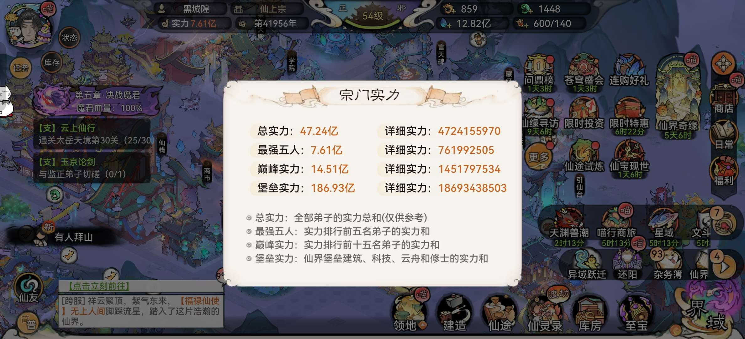 7亿多战力,大乘兵金船头,氪金功法焰花 松风,道兵很多,两万多年份人多,很多四阶法宝,3星星河,4星