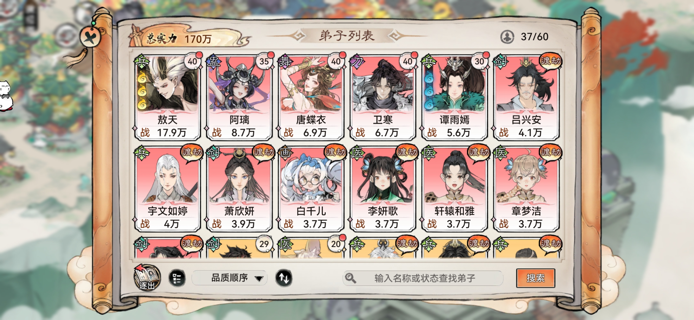 8~6个逆天弟子+总2600~1750抽【死绑可改密码】