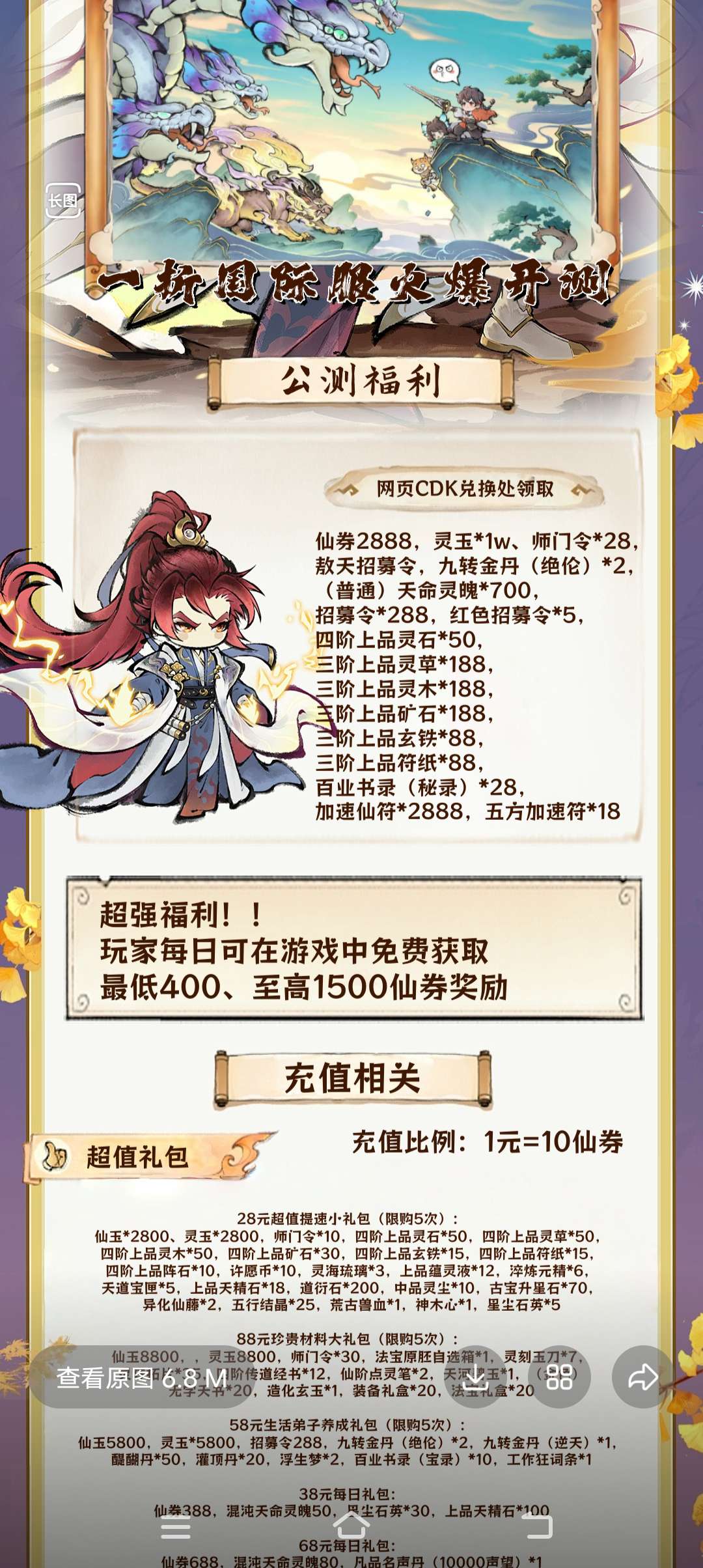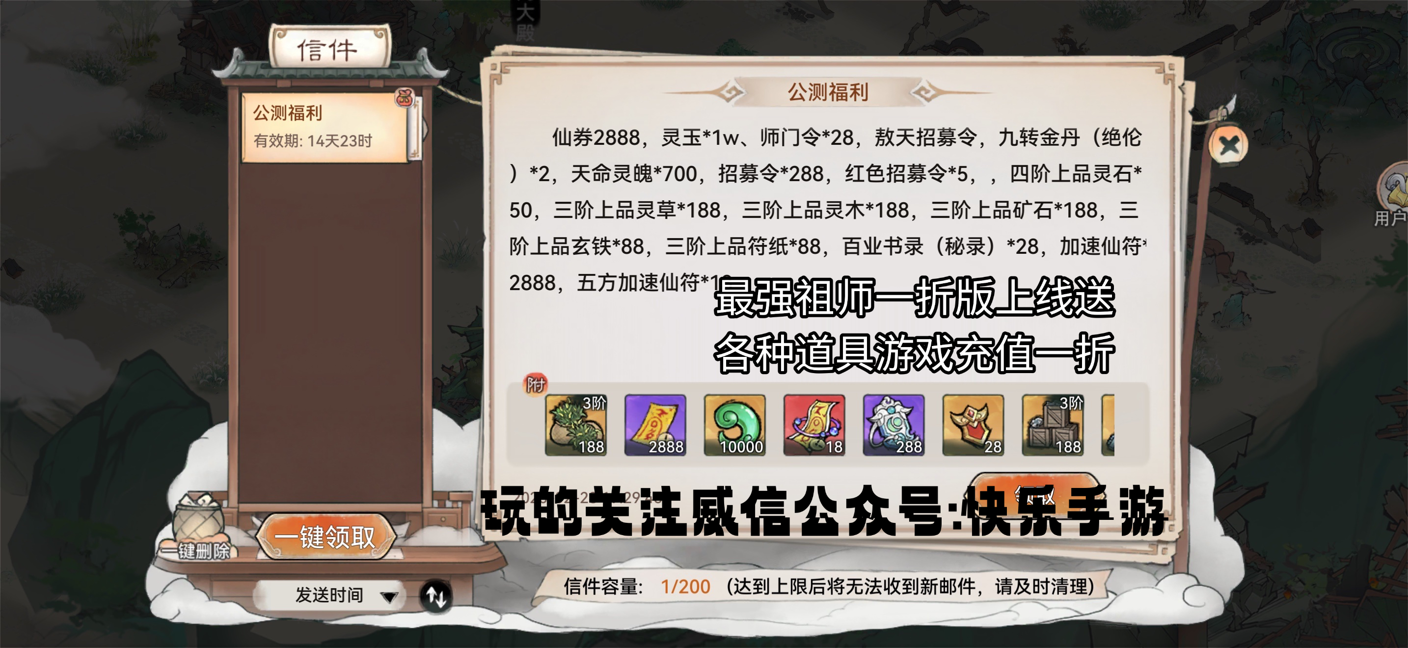 最强祖师!内置充值1折进游送截图福利,每天可免费领随机400到1500仙卷,不懂勿扰谢谢