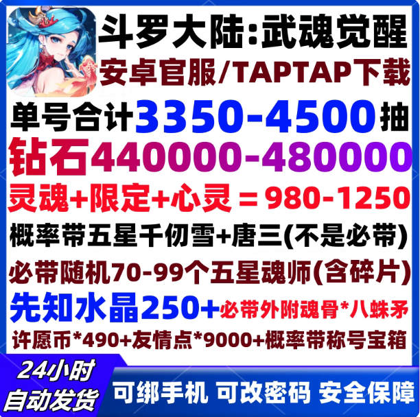 斗罗大陆:武魂觉醒【安卓官方】【必带千仞雪+海神唐三】钻石29W+★灵魂契约600+★先知120+【官服】