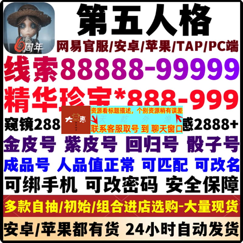 【苹果iOS官服专用,安卓勿拍】,【必带2-4紫皮+紫皮自选】线索22000-25000,精华珍宝220-280个,灵感1700-3000,紫薯3500-5000。图片宣传用,资源以商品描述为准。活绑账号,可绑手机,可改密码,安全无忧!!!