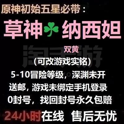 可双改实名⭐必带【草神纳西妲+随机1-2个五星人物】⭐附3-10个四星高级角色及武器⭐可绑手机改密码