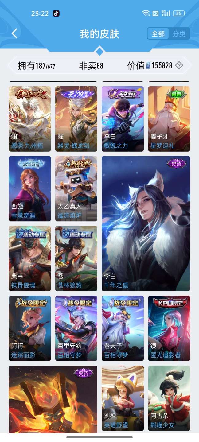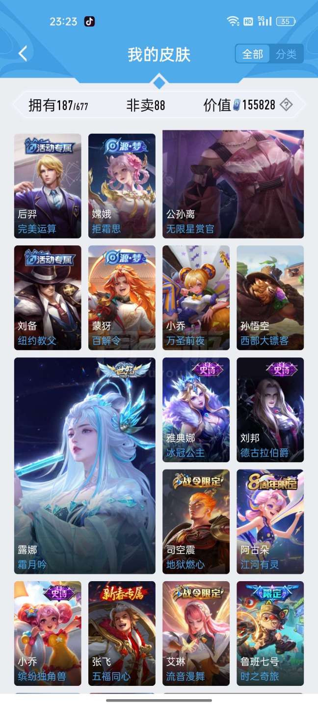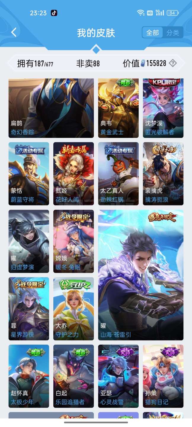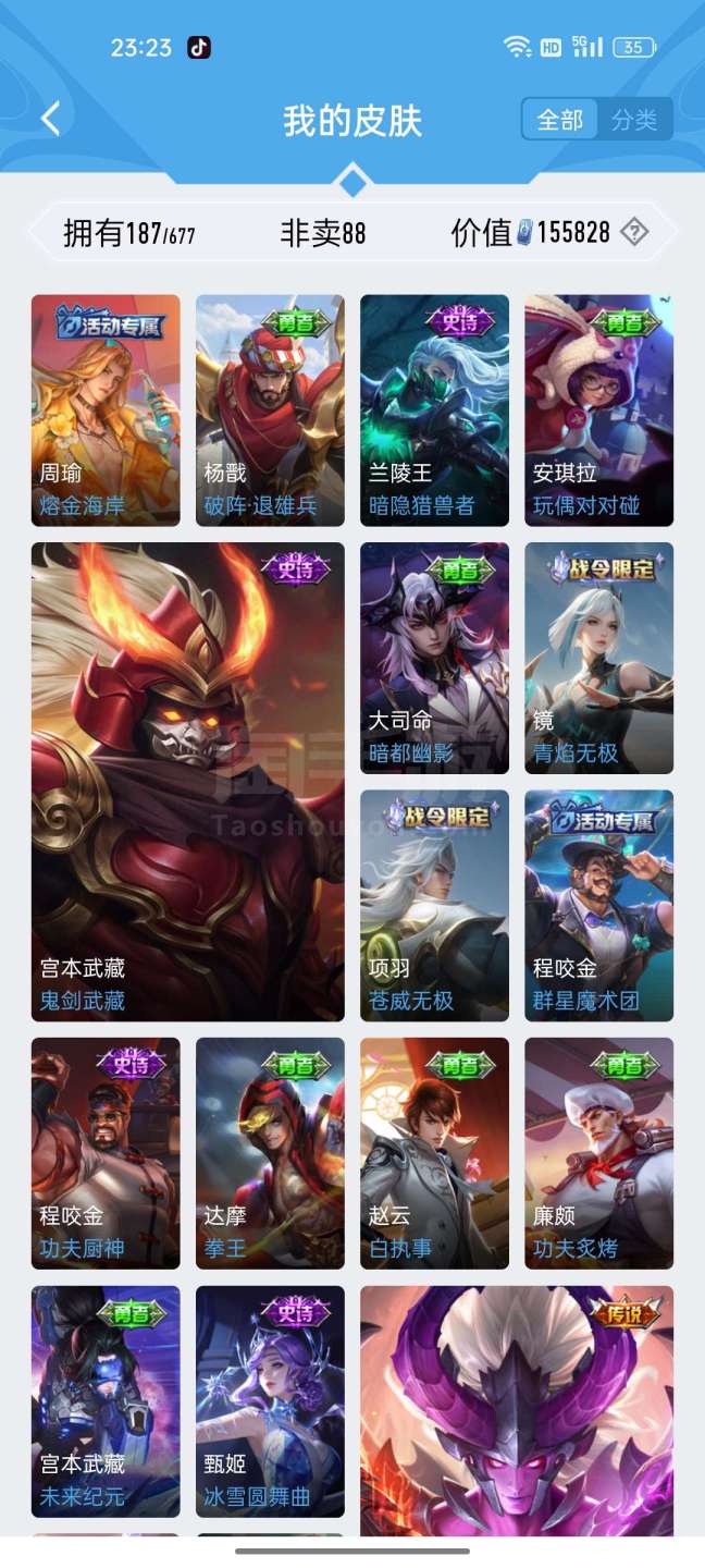 王者荣耀【安卓QQ】号是好号,但是被封了,所以特价处理了,荣耀典藏无双传说都有,还有一个怪盗基德天幕,标价不是卖价,但确