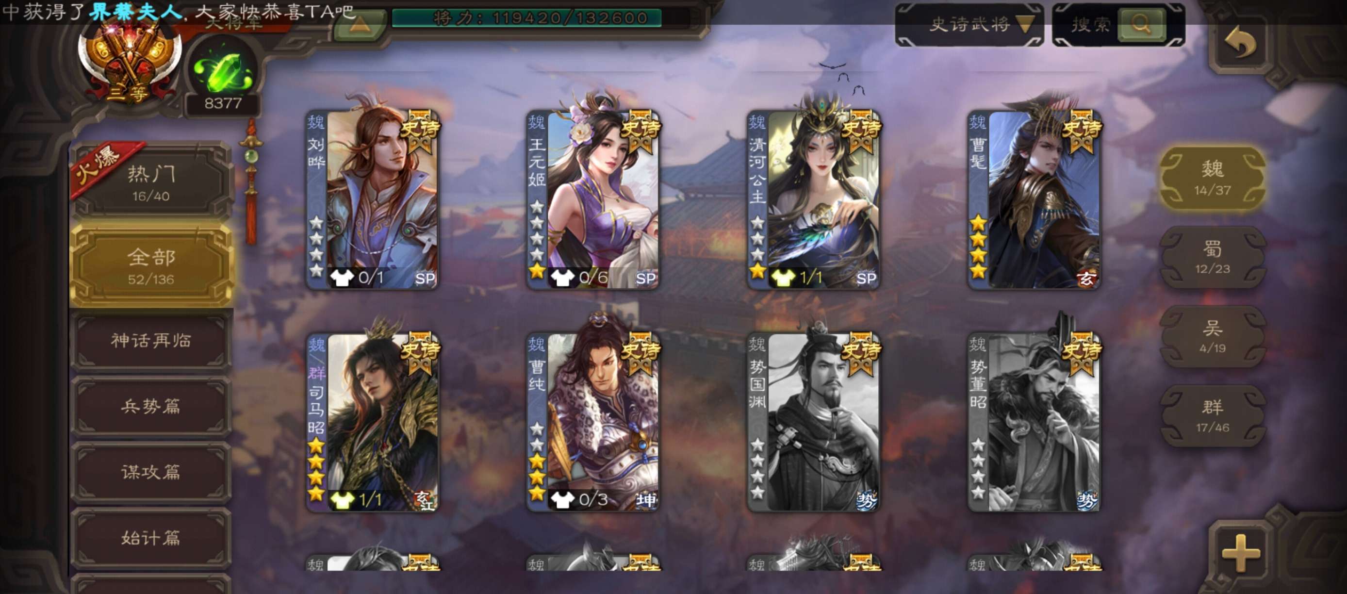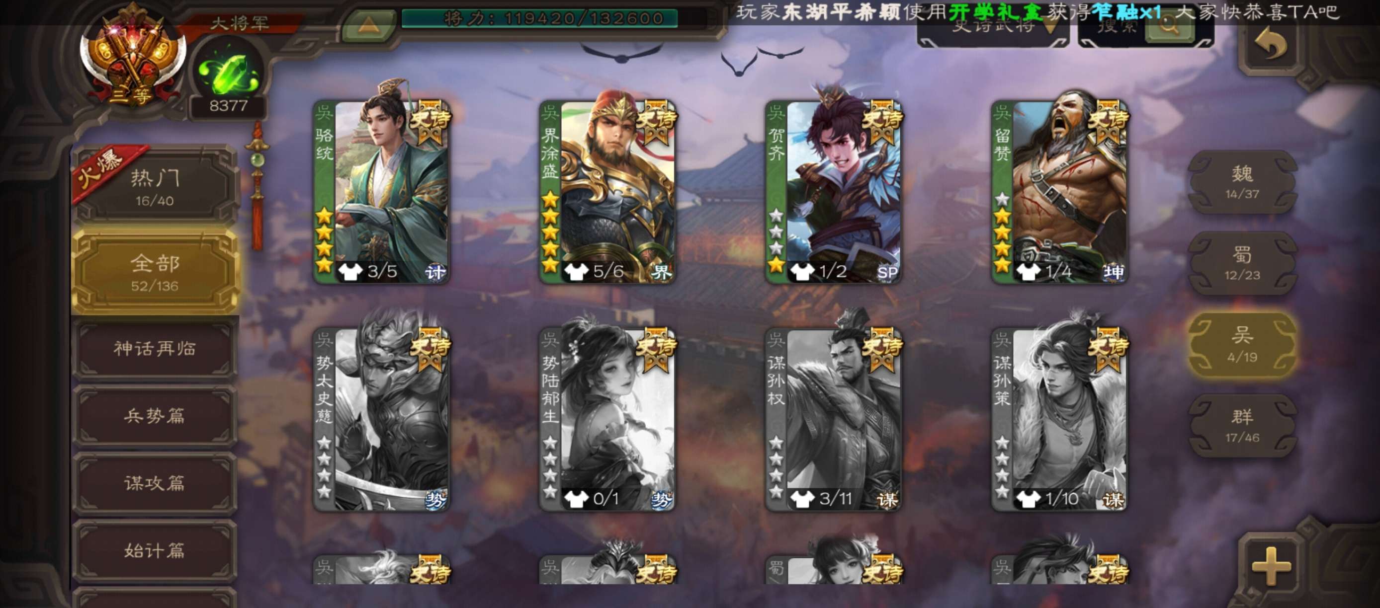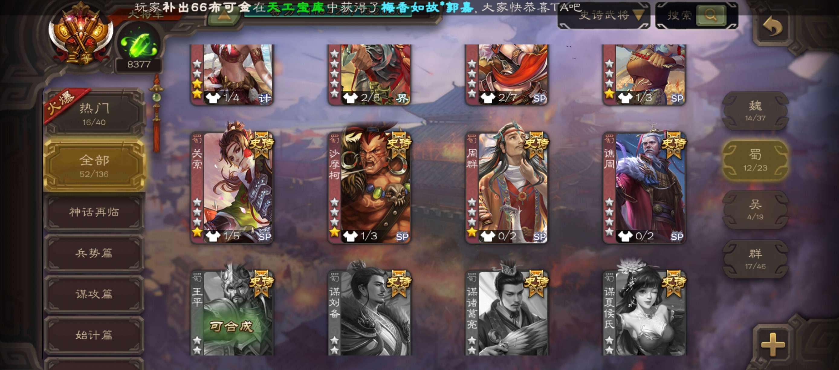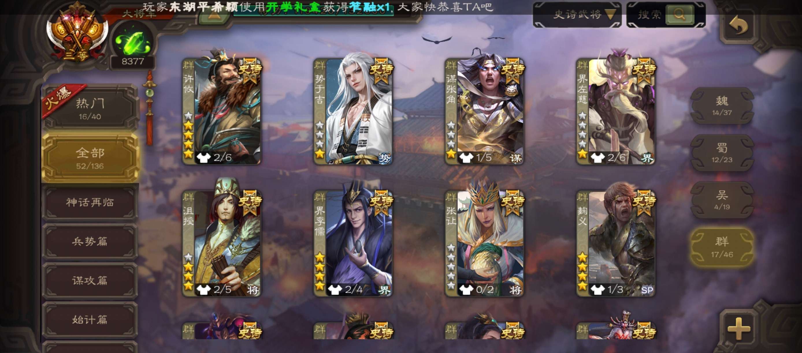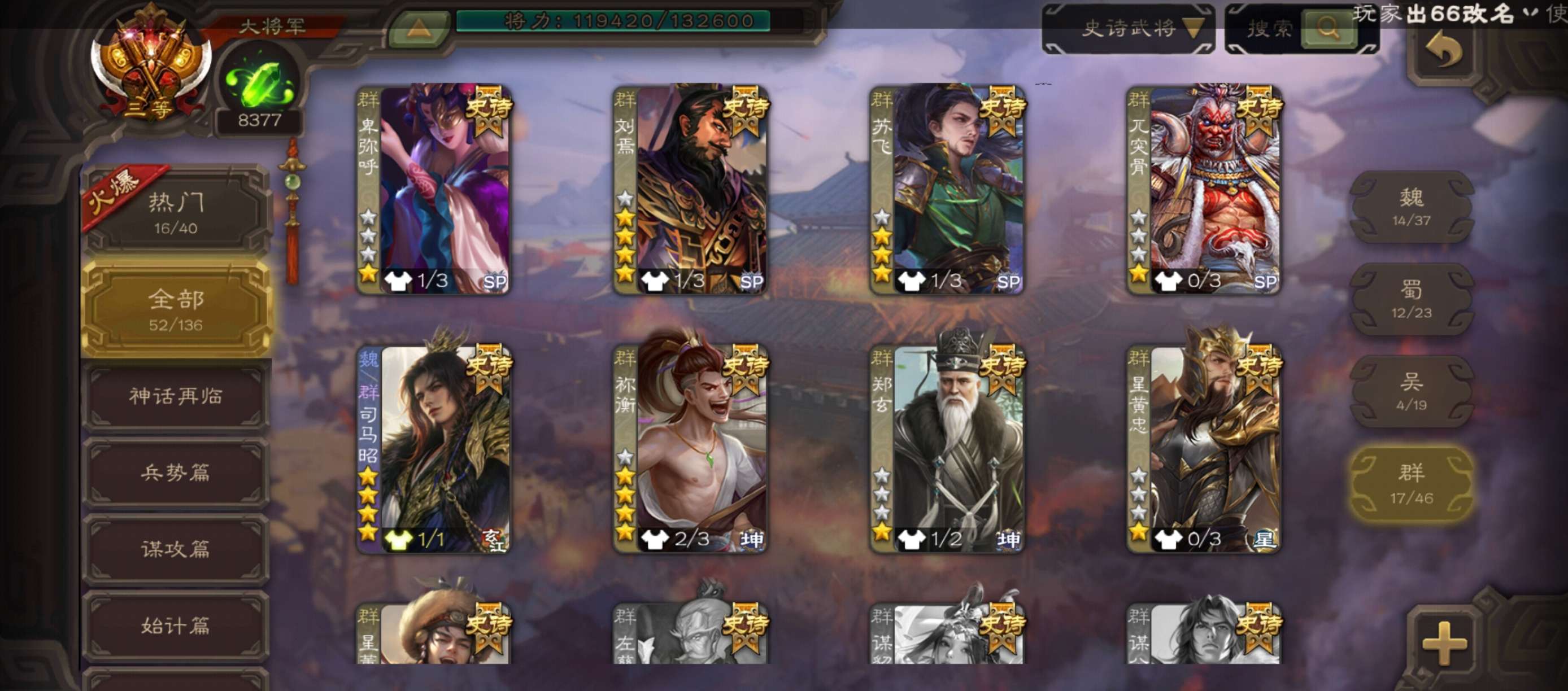 史诗武将数量: