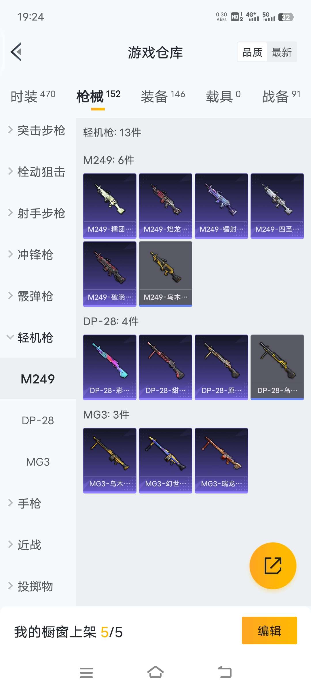 和平精英【安卓QQ】6套粉装,7级心之恋语特效枪,5级m762特效枪