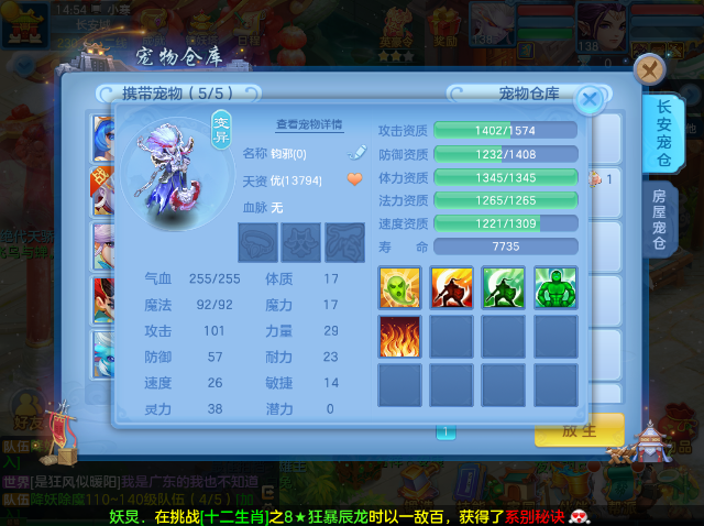 神兽狮子狗,大成五技能蚩尤,六技能钧邪等等