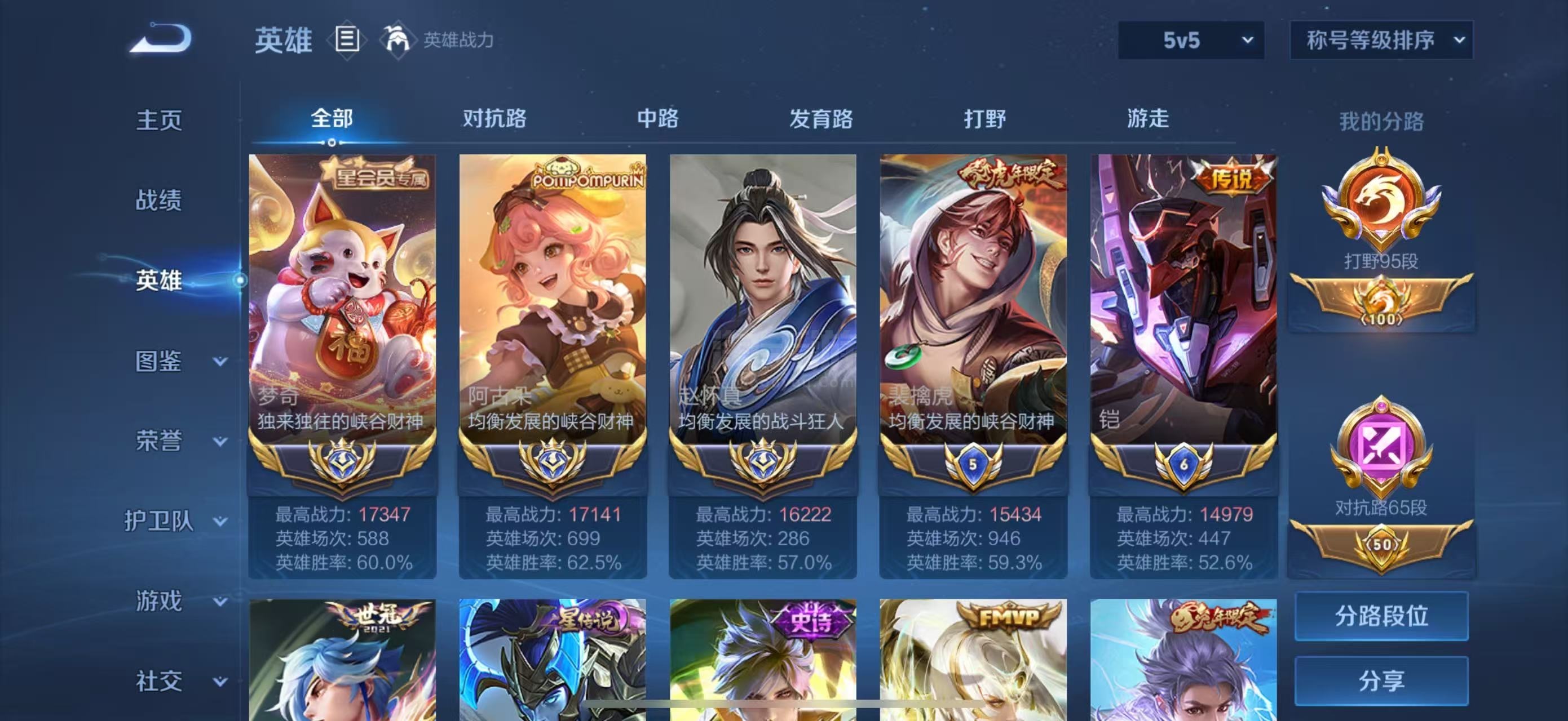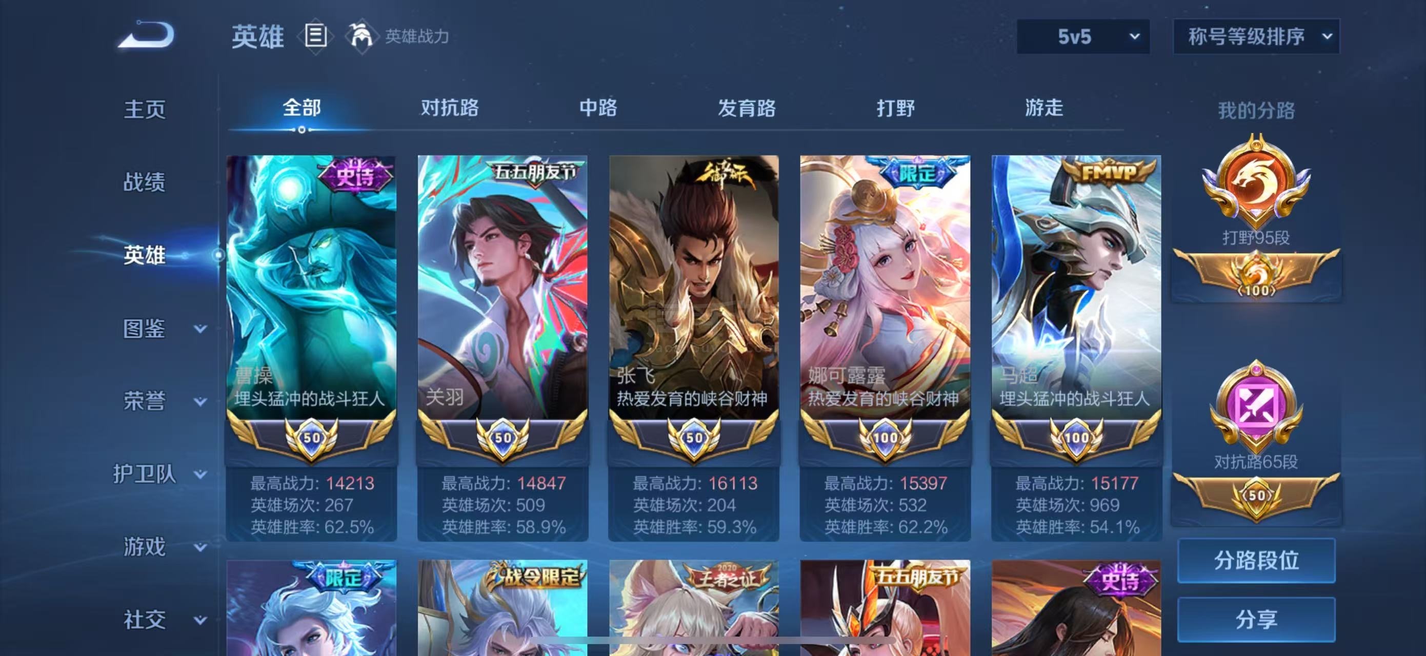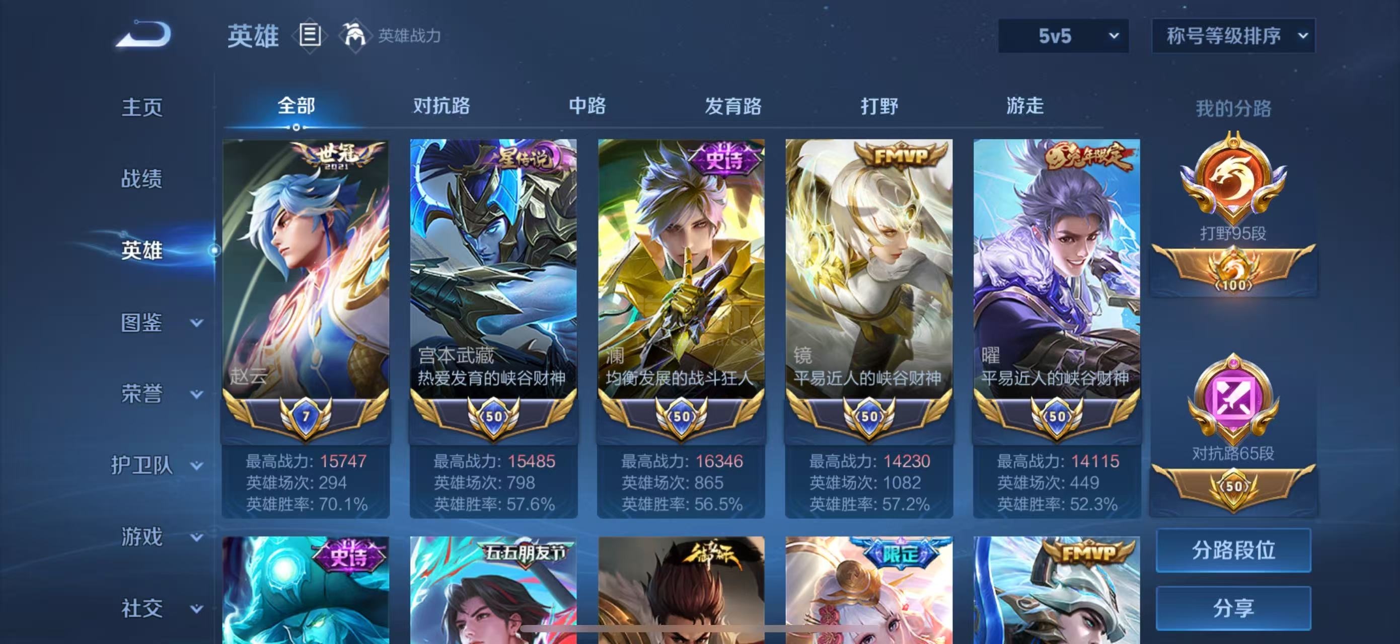 王者荣耀【苹果微信】iosv-可二次98段打野梦奇转回打野路就是98段打野