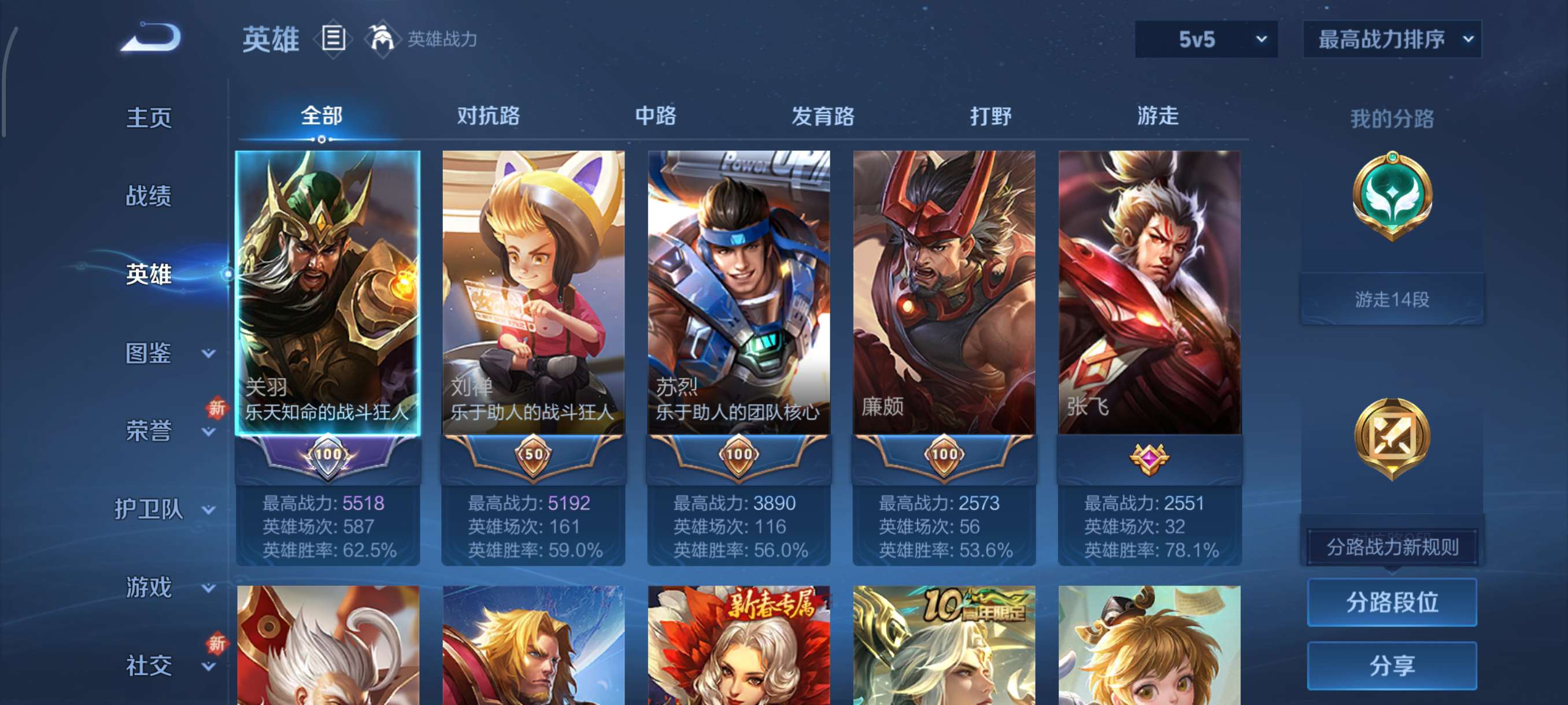 三个王者印记,关羽高胜率五千五战力,有关羽的决胜骁骑皮肤。有宫本地狱之眼和后羿神树通天皮肤