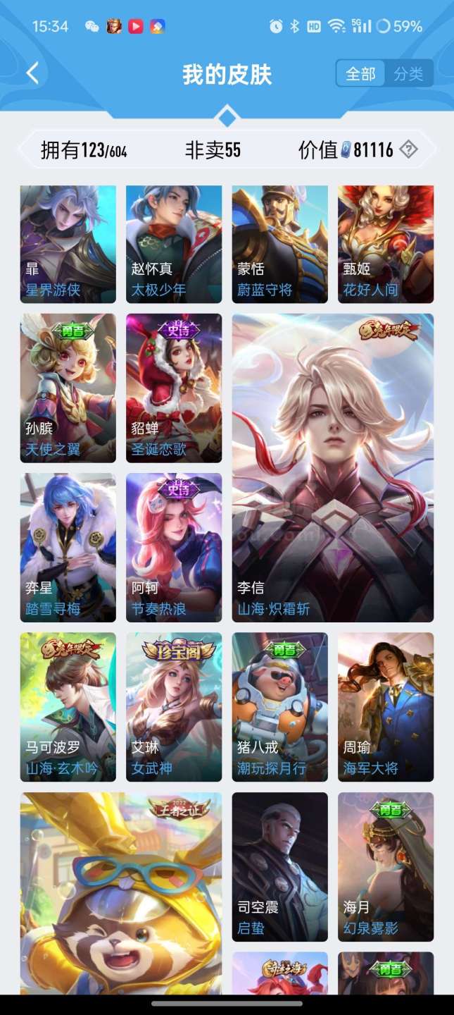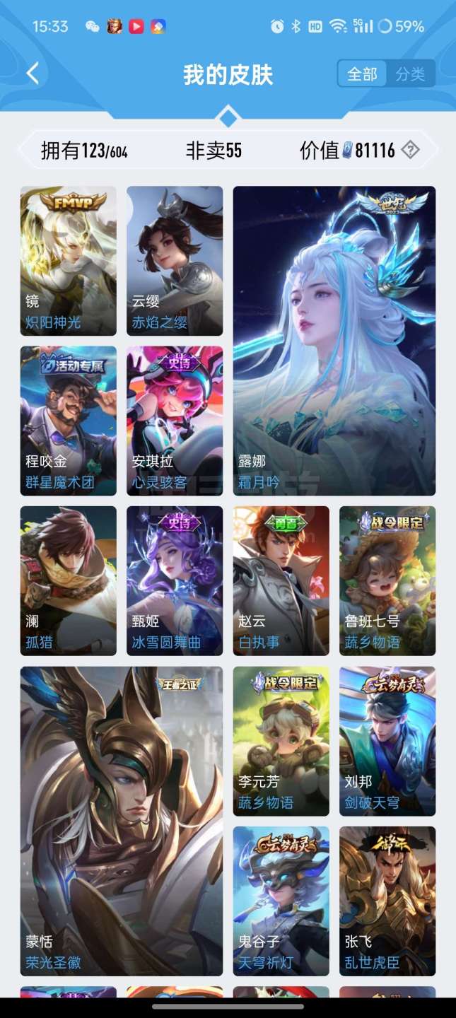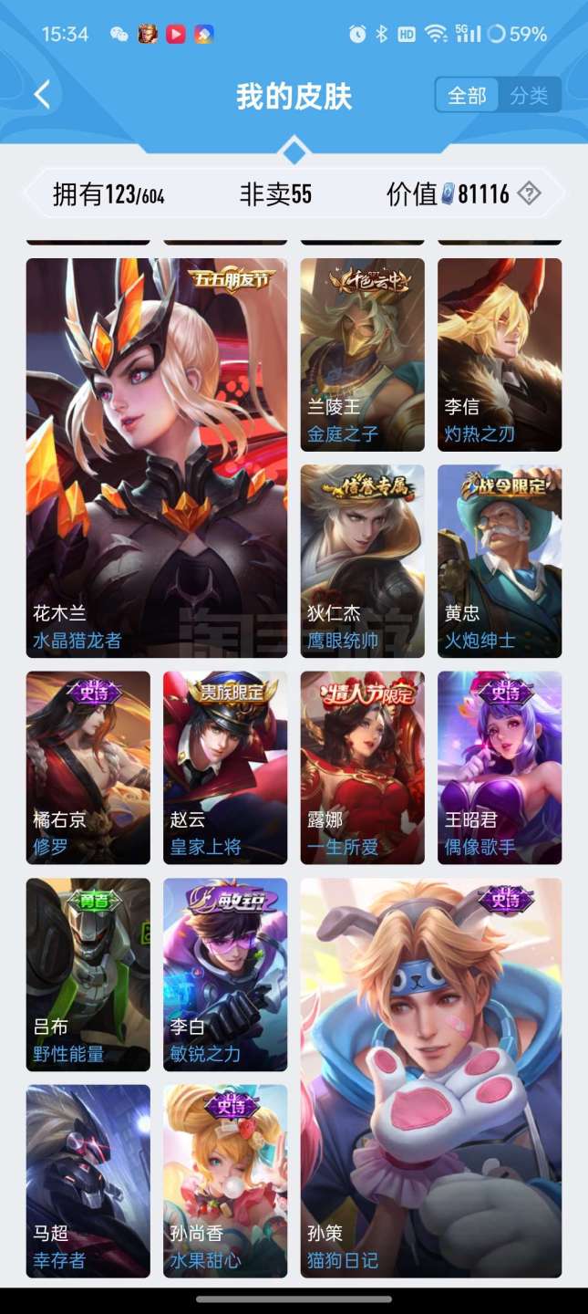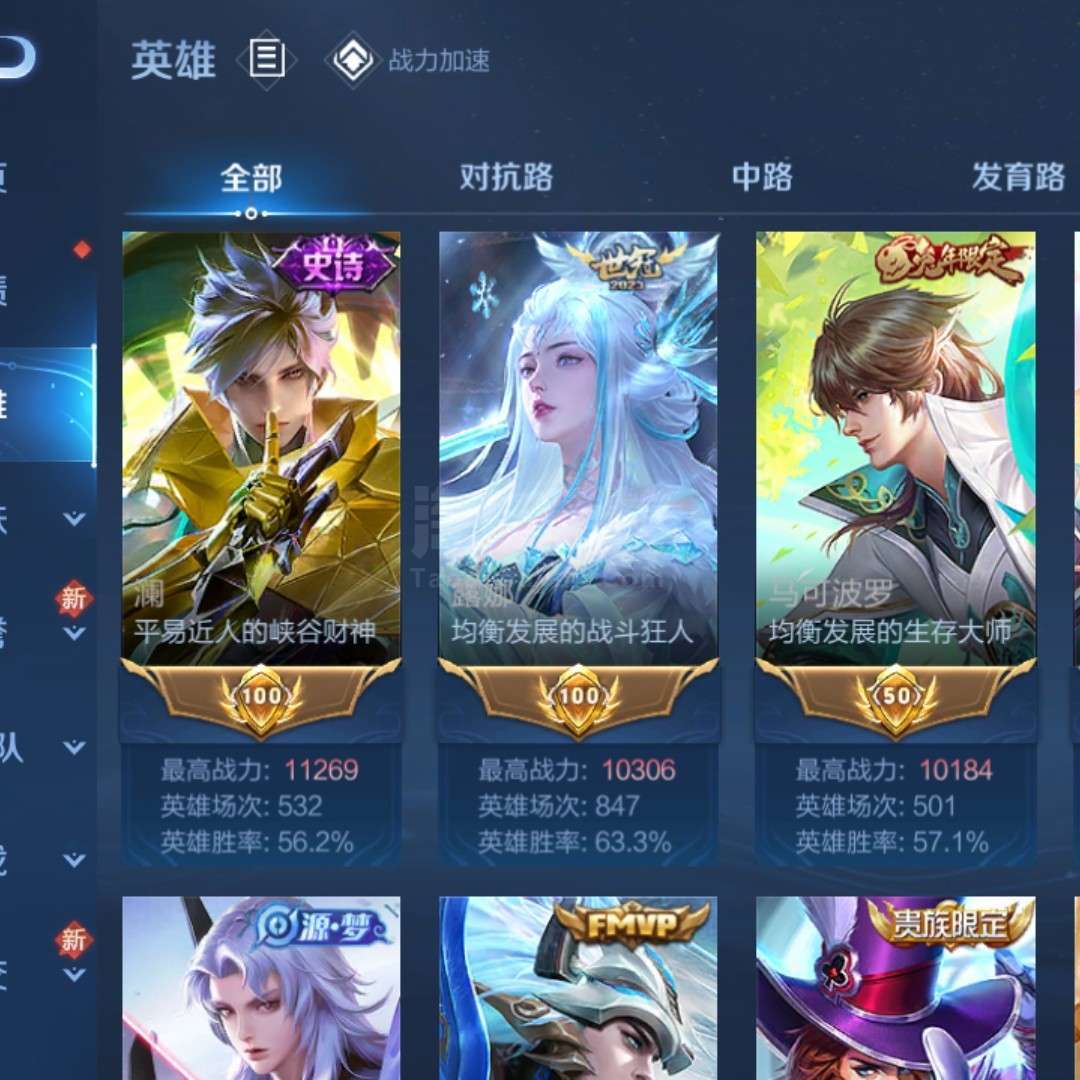 王者荣耀【安卓微信】极品号满铭文万战露娜澜马可全英雄200皮肤碎片