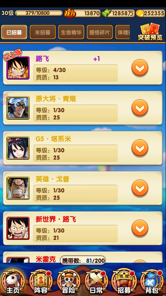 单人上阵 未绑定 未充值 未用礼包 V3 金塔西米 青雉 戈普 外带自选3红多橙伙伴包 精华5红