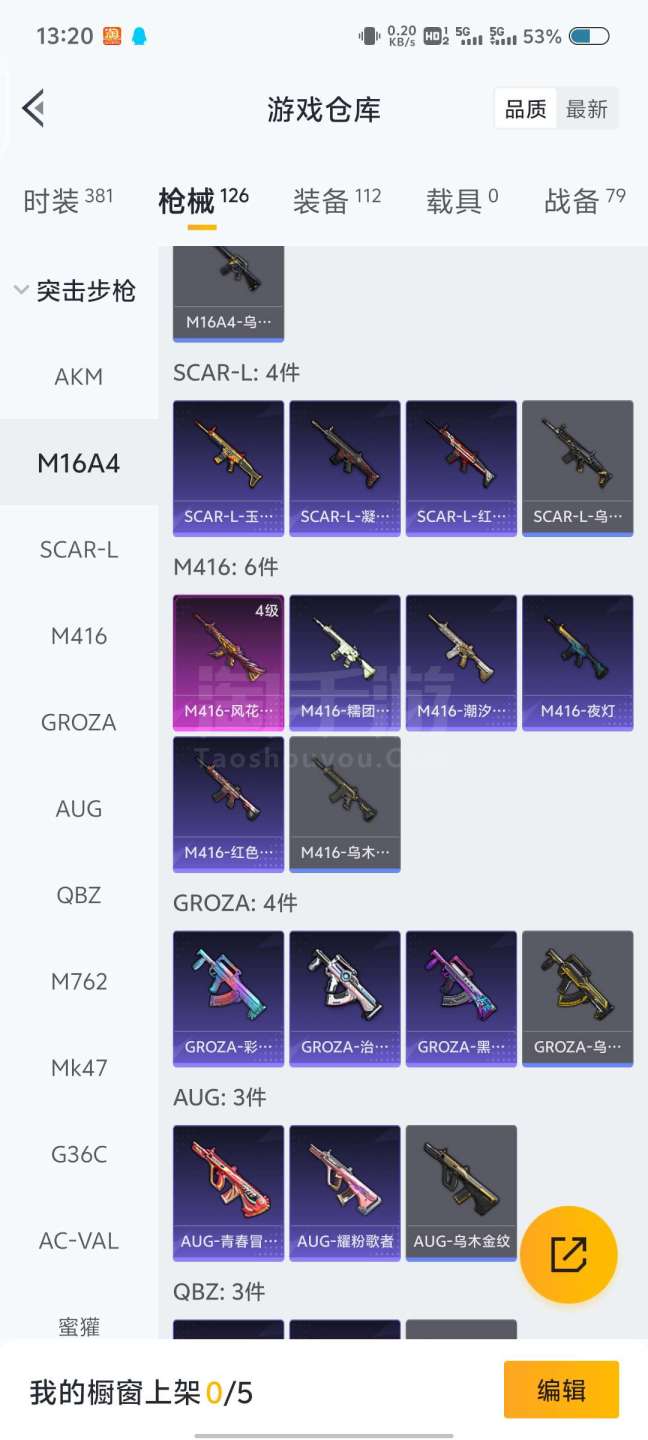 126枪皮91套装不朽星钻M416 -风花雪月稀有套装数码大师10王牌印记126枪皮一级包22二级包