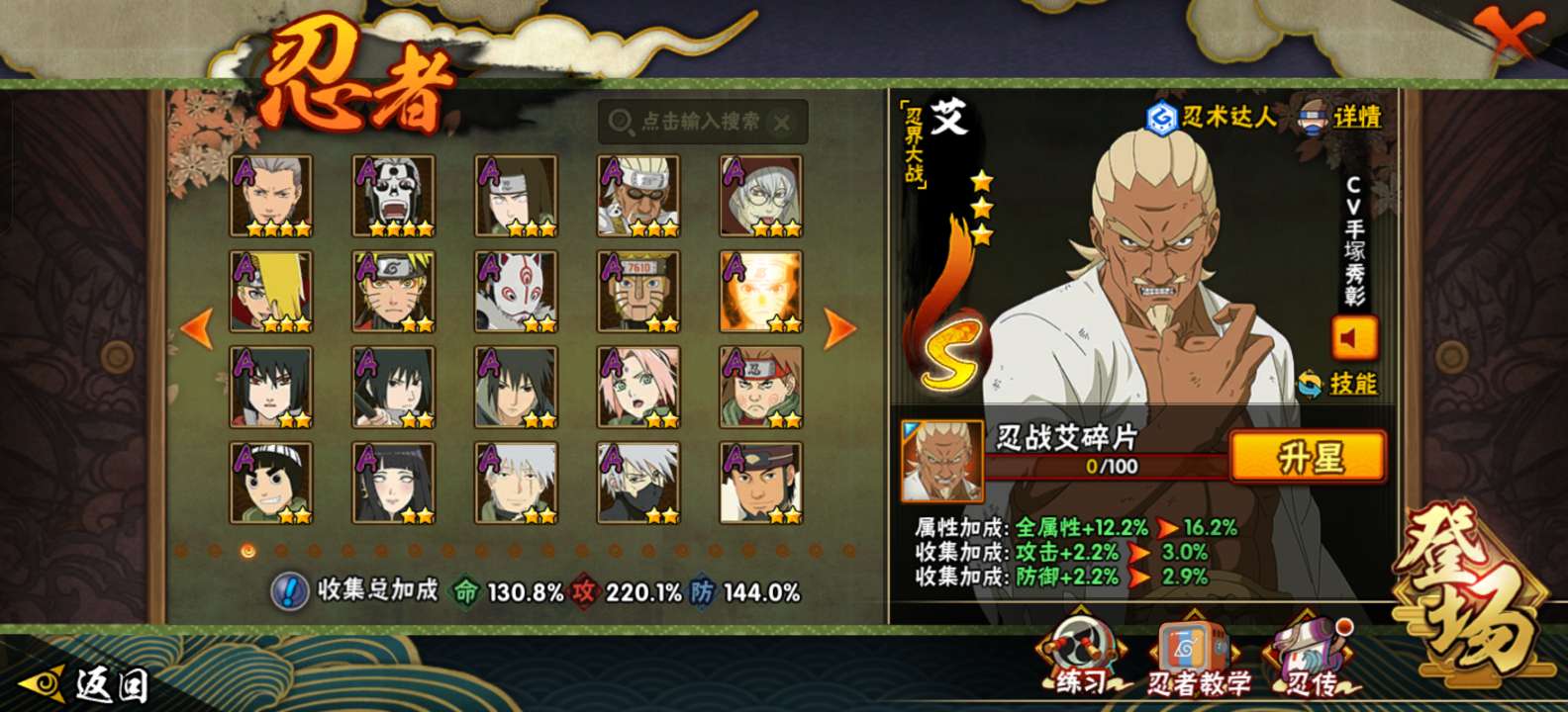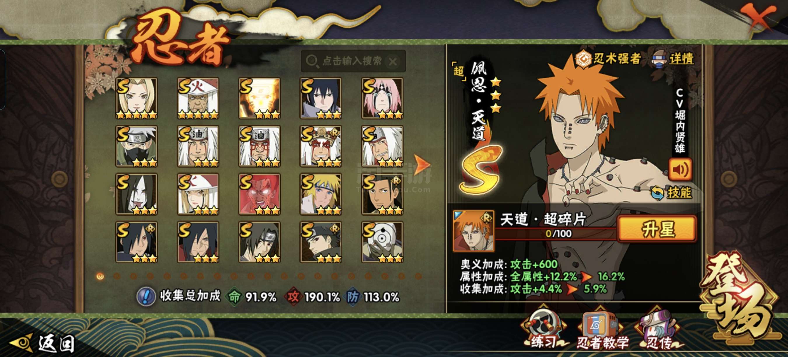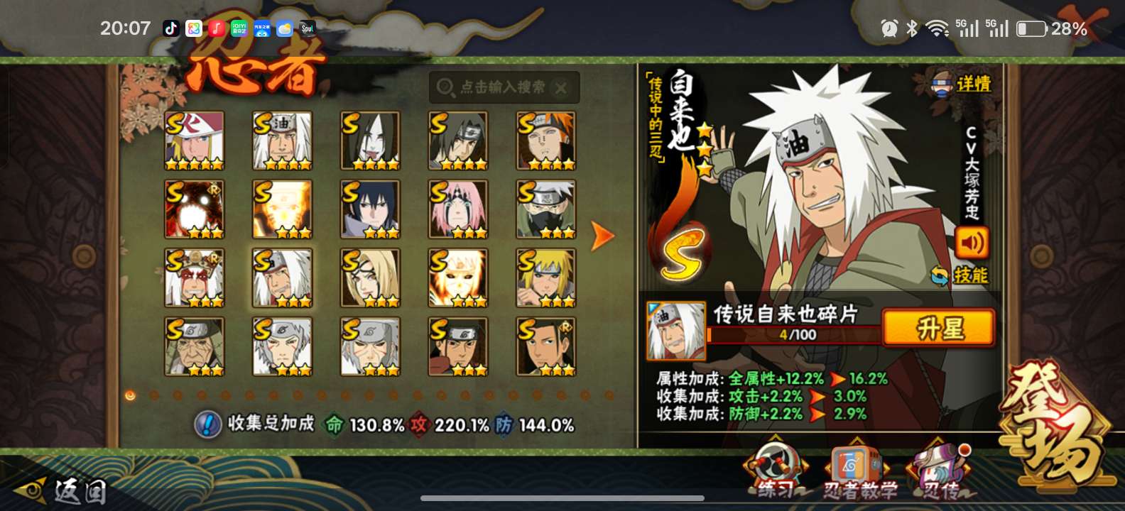 火影忍者【安卓QQ】35s有二次v13 20000多金币,35s五星水门有七十片红狗,八十片舍人